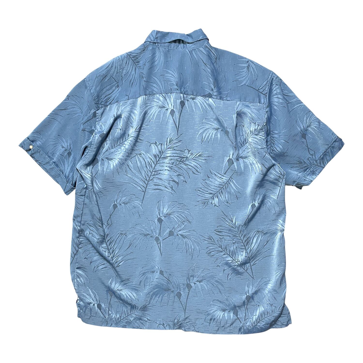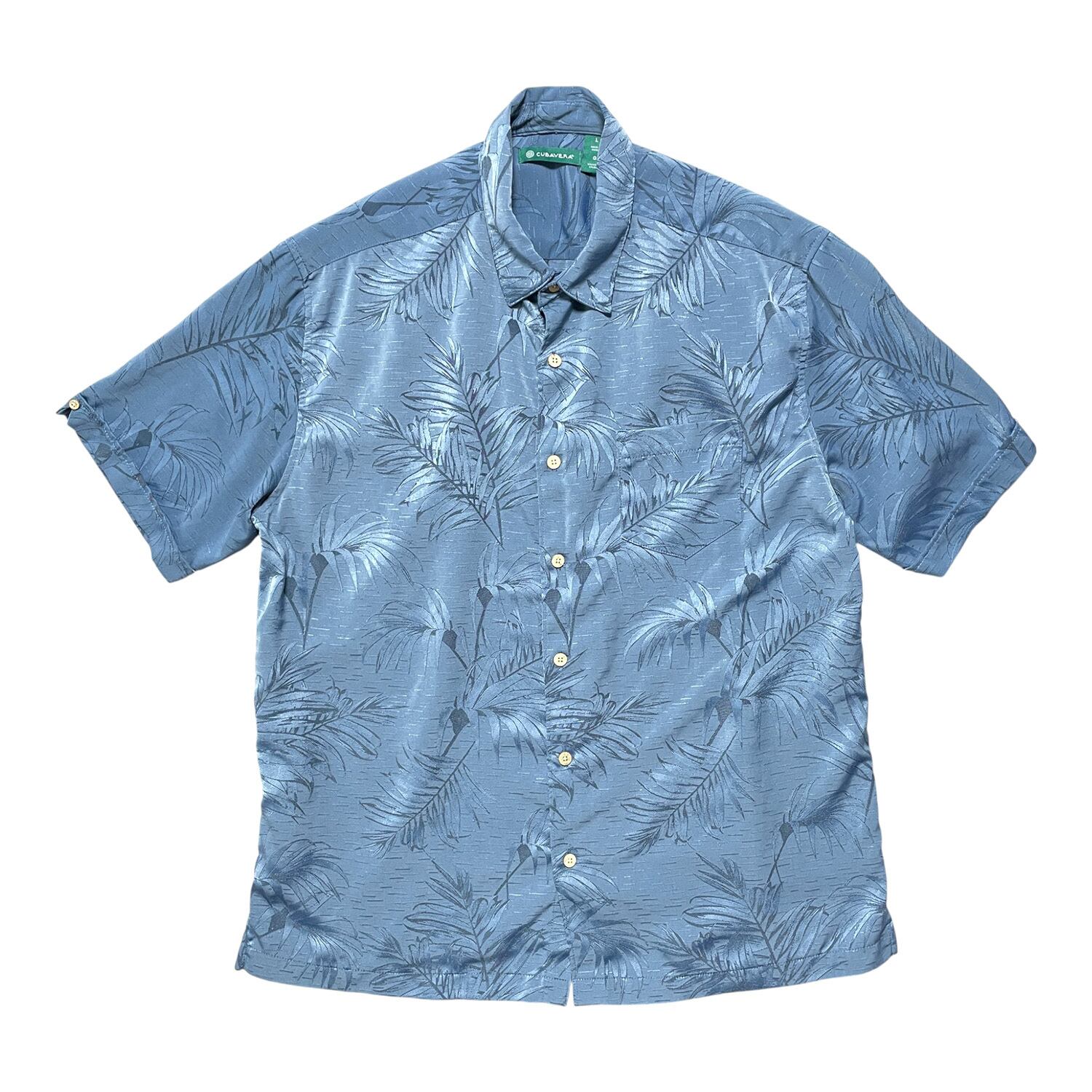 USA 古着 CUBAVERA キューバベラ ポリエステル アロハシャツ ハワイアンシャツ ジャガード リーフ柄 メンズL ブルー BF3799