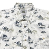 USA 古着 MICHEL AUSTIN ミシェルオースティン コットン BD ボタンダウン アロハシャツ ハワイアンシャツ カジキマグロ 総柄 メンズXL ホワイト BF3807