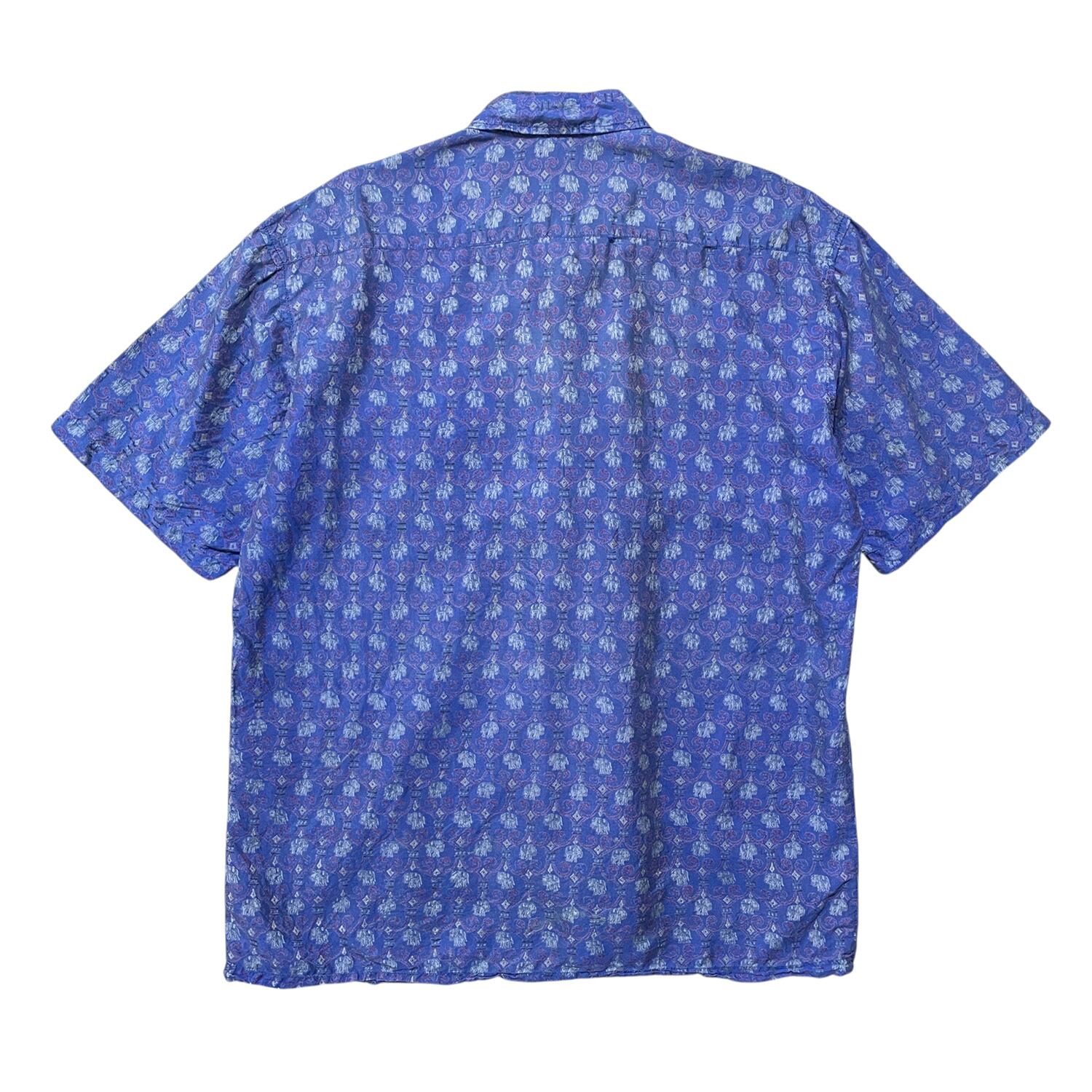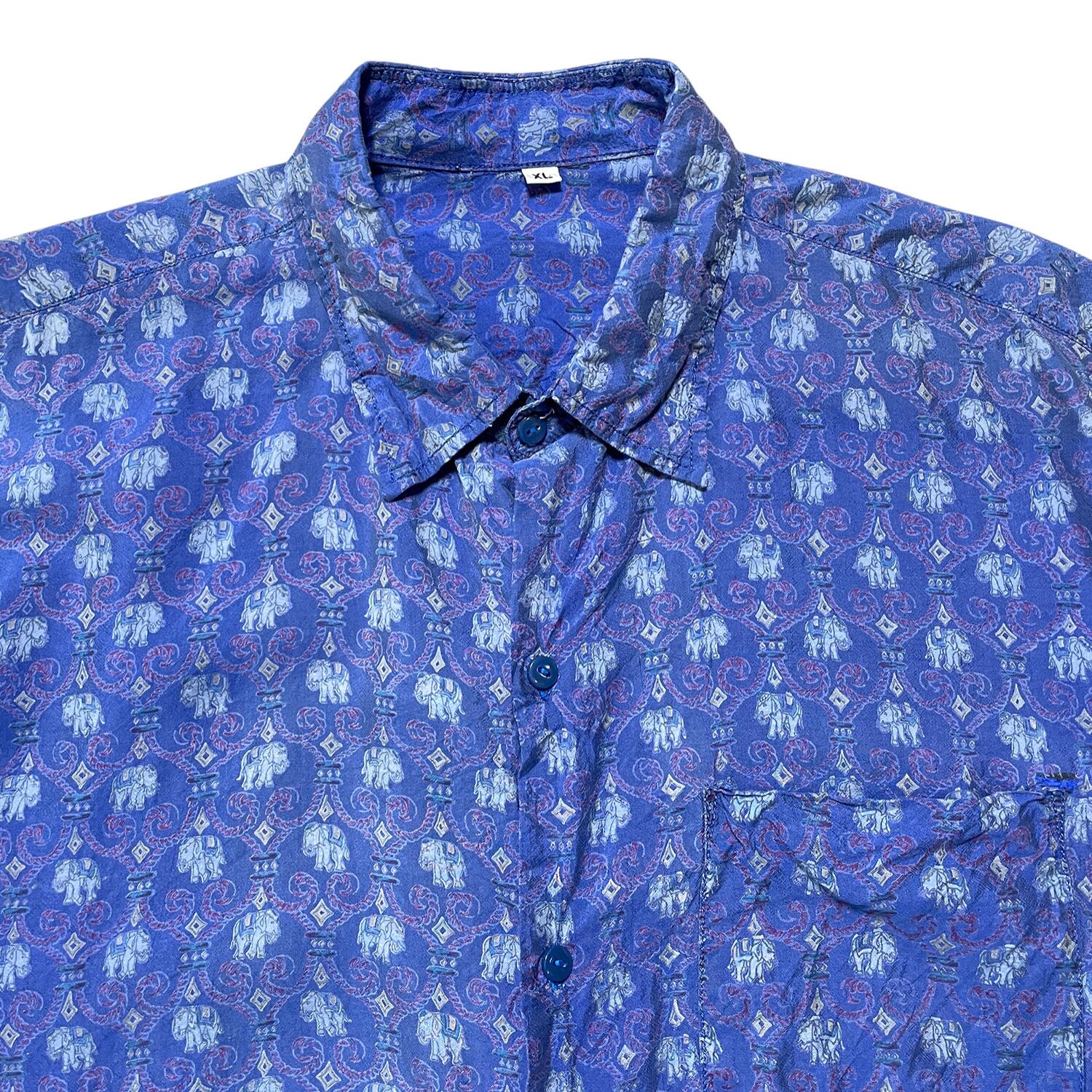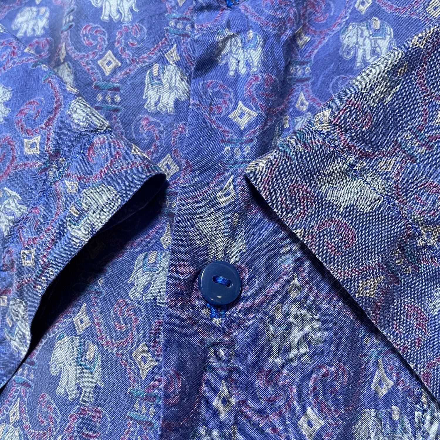 USA 古着 ヴィンテージ タイ シルク 総柄 リゾートシャツ ビーチシャツ 半袖シャツ 象柄 アロハシャツ メンズXL ブルー BF3813