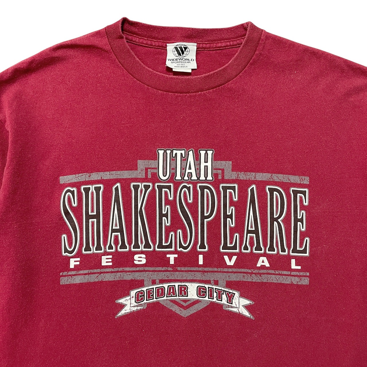 古着 USA製 90S ユタシェイクスピアフェスティバル Tシャツ プリント ボルドー メンズXL クルーネック BA4403