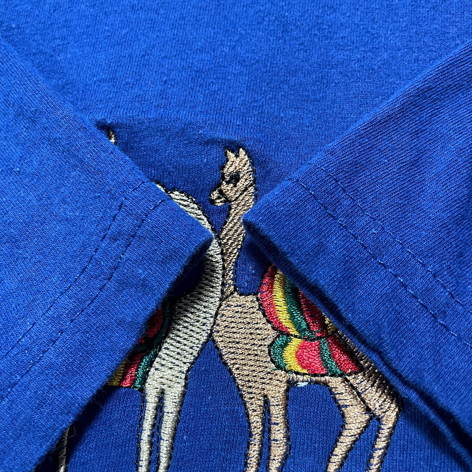 USA 古着 マチュピチュ アルパカ Tシャツ ヴィンテージ 刺繍 ネイビー メンズM 程度 クルーネック BA4435