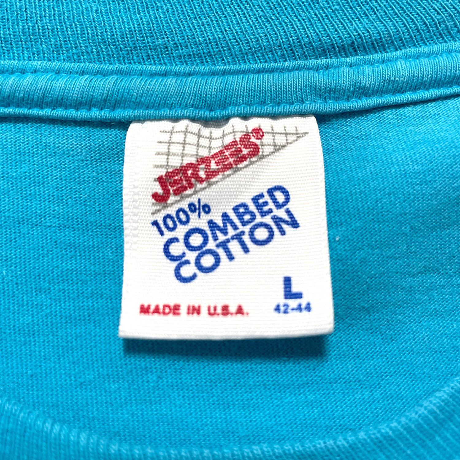 USA 古着 80S USA製 ヴィンテージ 4匹の子豚 コットン クルーネック Tシャツ メンズL ターコイズ シングルステッチ BA4453