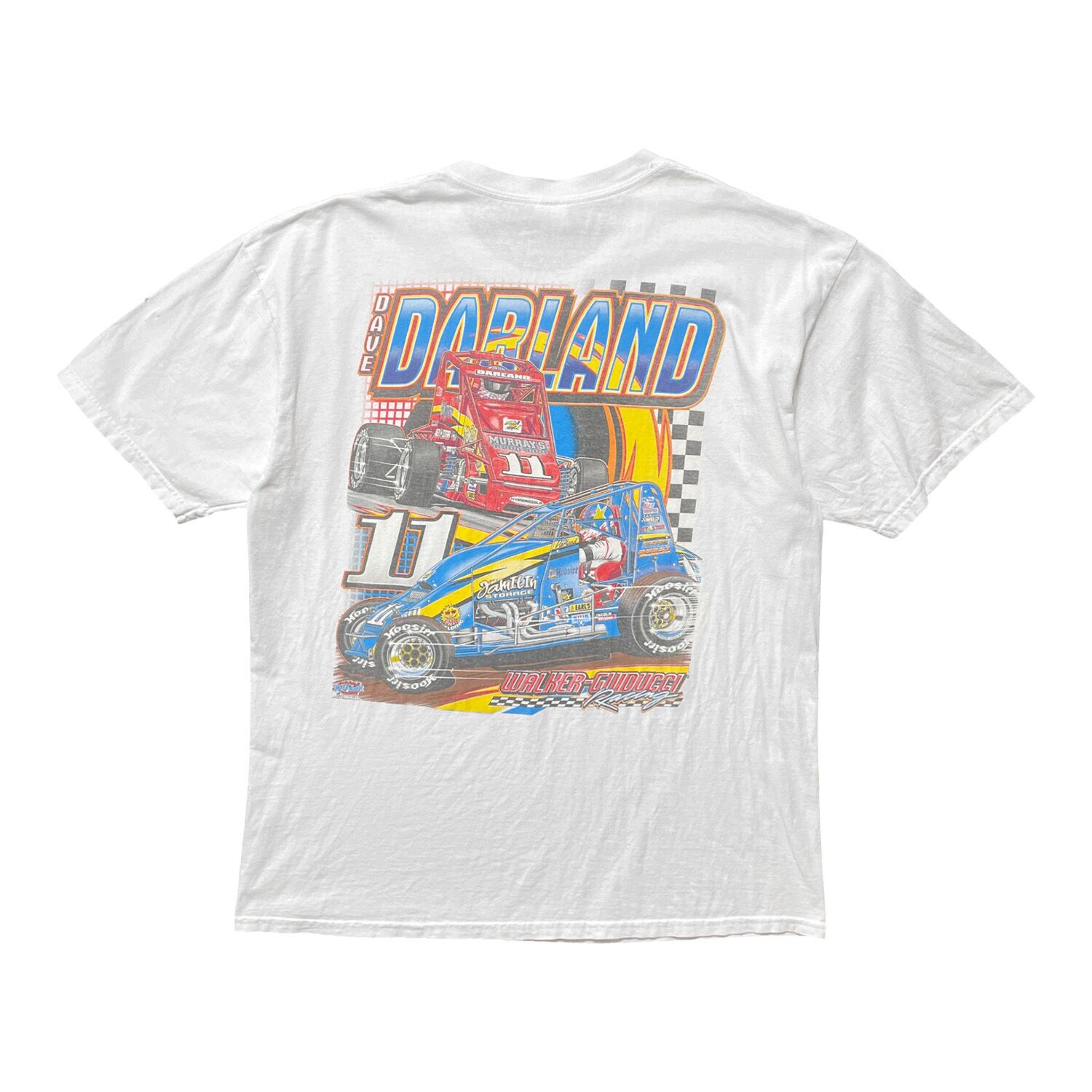 USA 古着 Dave Darland デイブダーランド レーシング コットン クルーネック Tシャツ メンズXL ホワイト BA4454