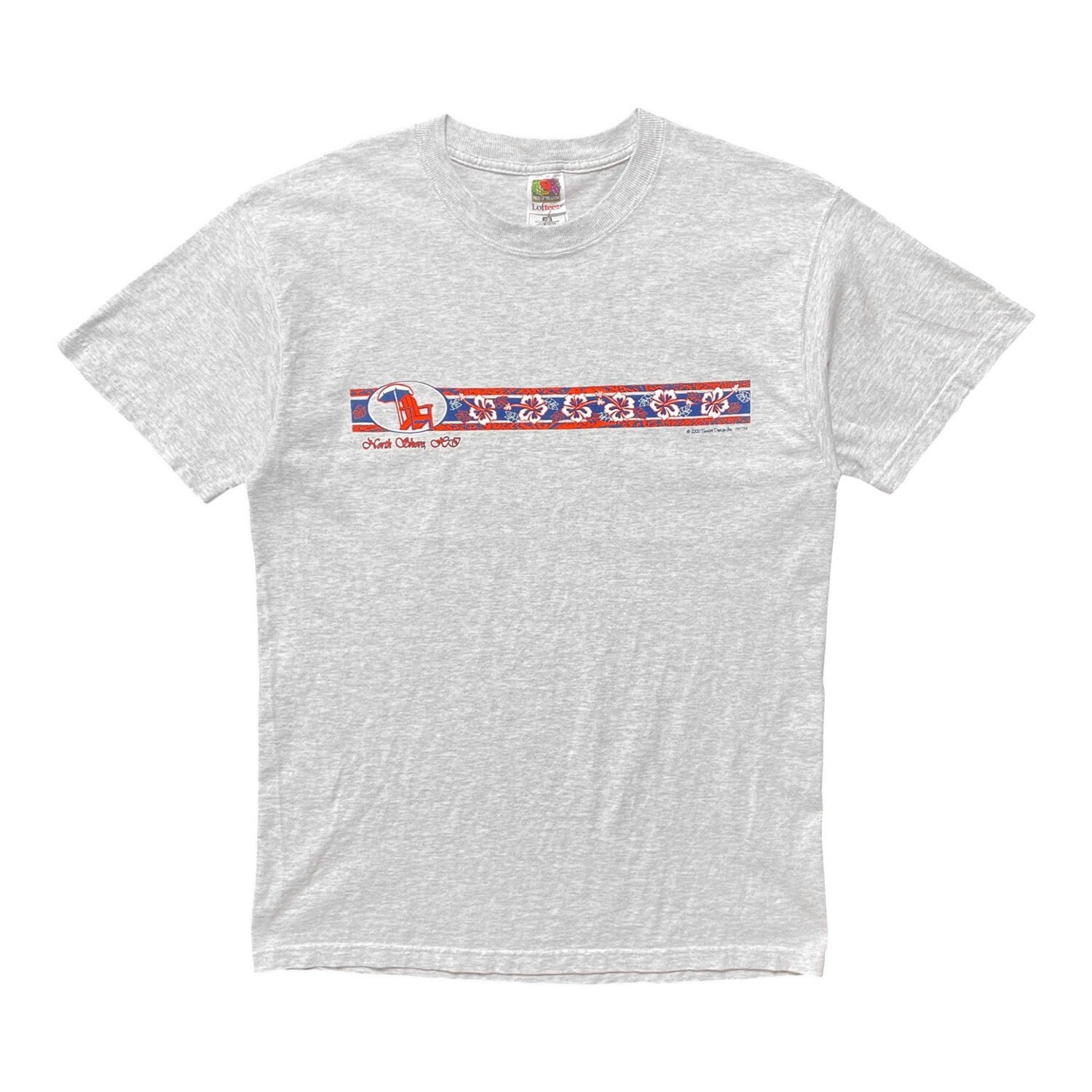 USA 古着 00S ヴィンテージ ノースショアー コットン クルーネック ハイビスカス Tシャツ メンズL ライトグレー ハワイアン BA4456