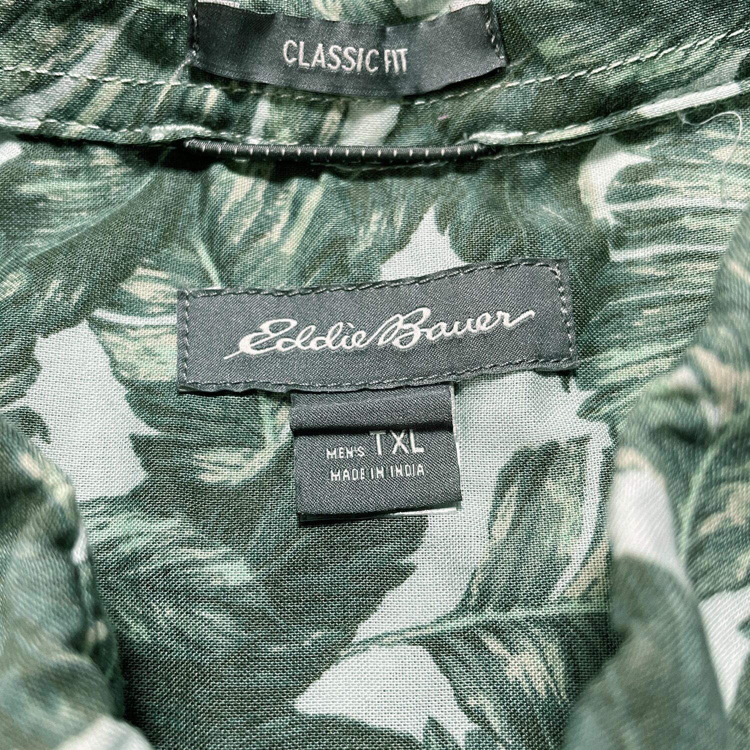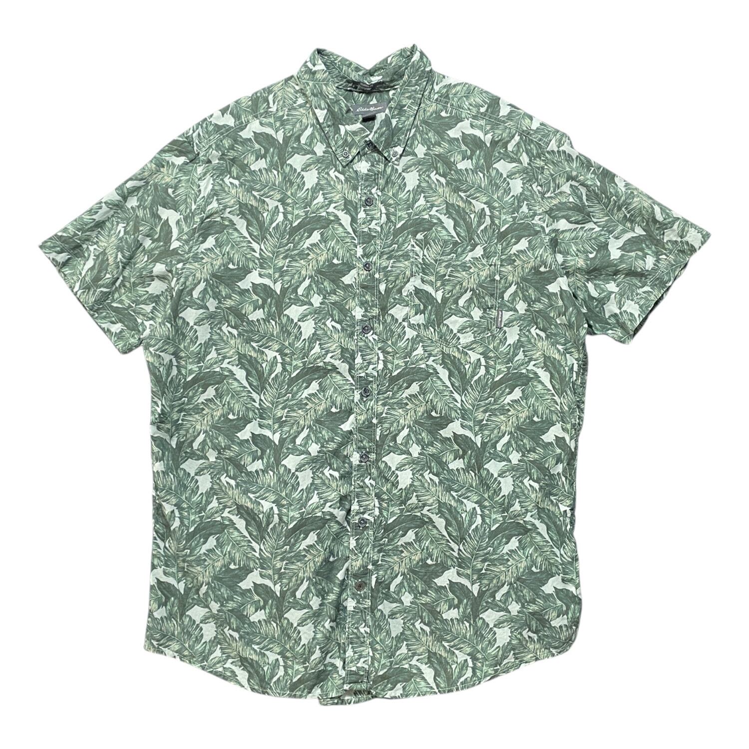 USA 古着 Eddie Bauer エディーバウアー アウトドア コットン アロハシャツ ハワイアンシャツ リーフ柄 メンズXL BF3829