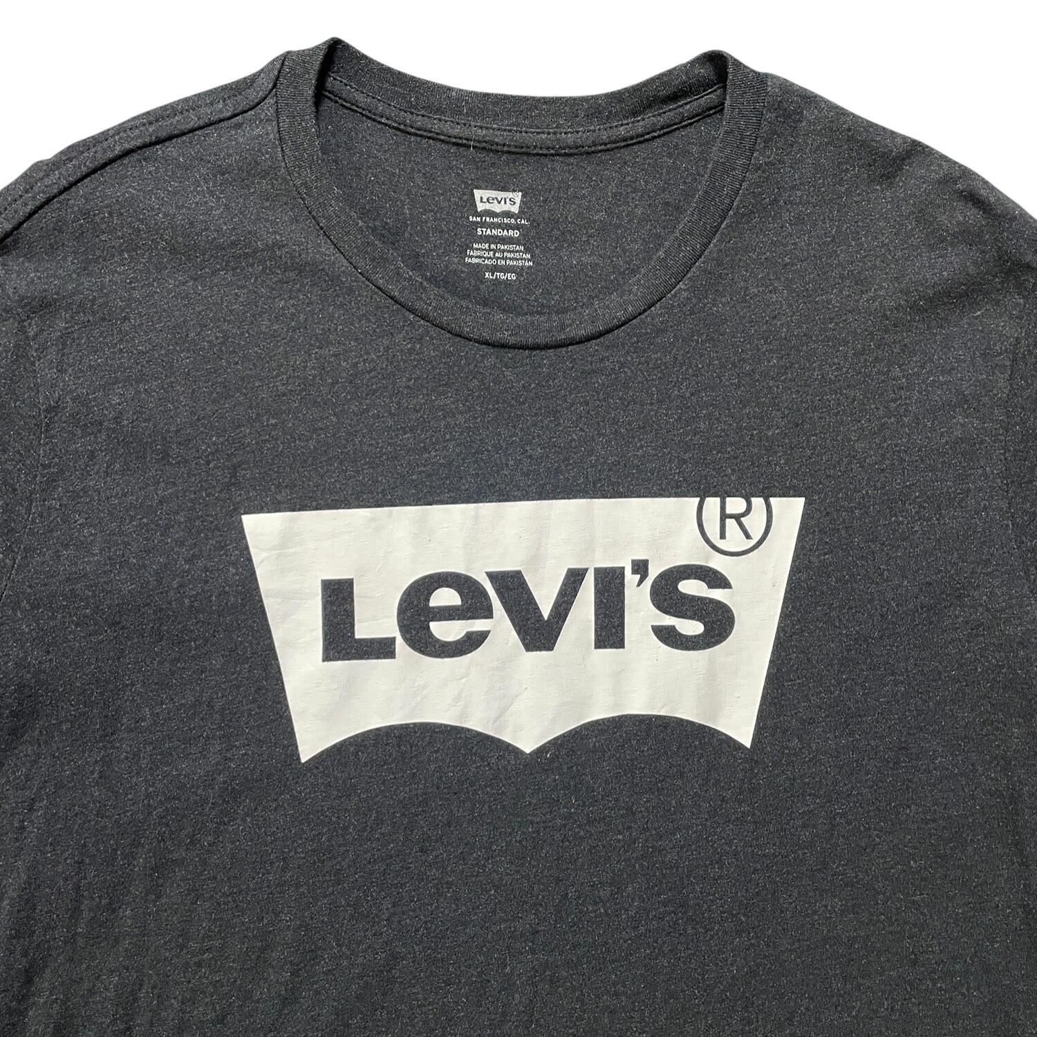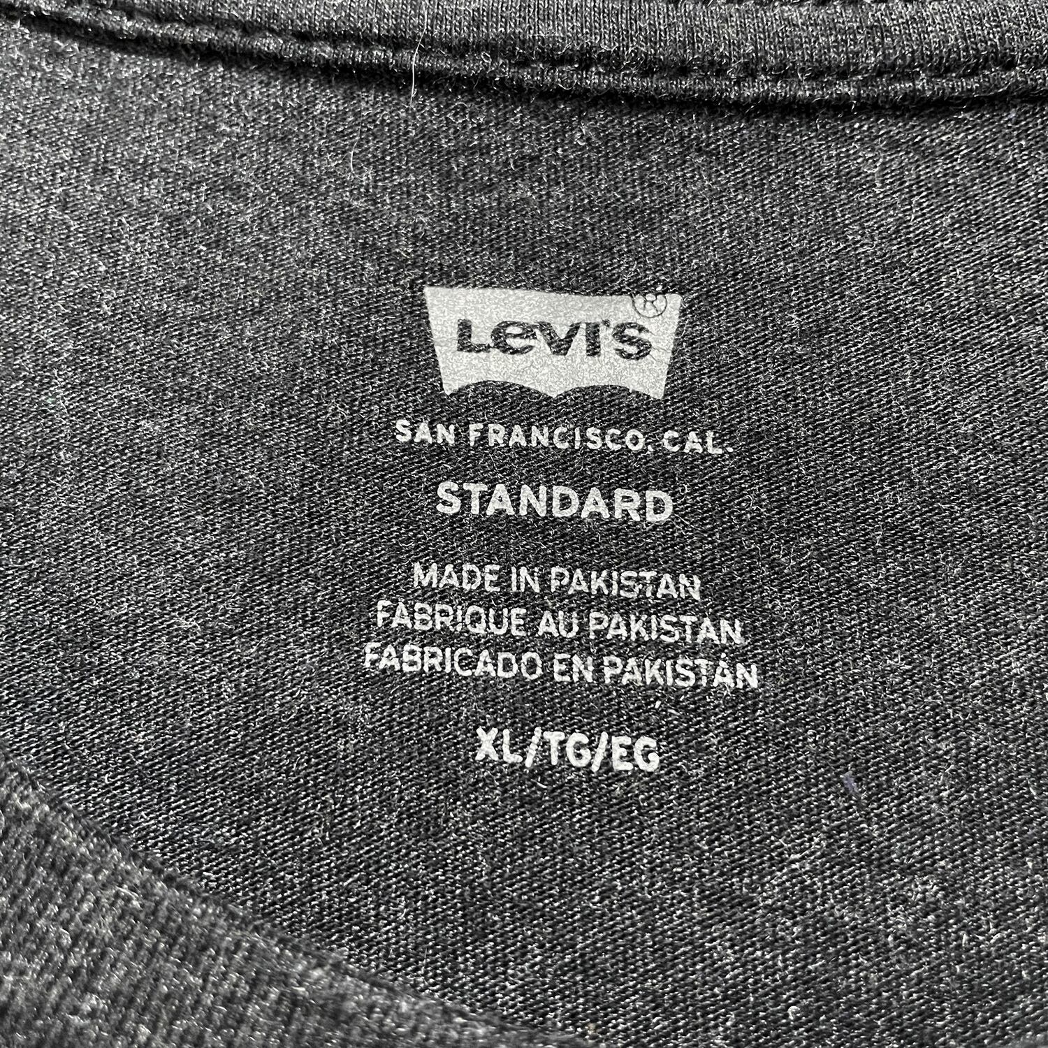 USA 古着 Levis リーバイス コットン クルーネック ロゴプリント Tシャツ メンズXL ブラック BA4502