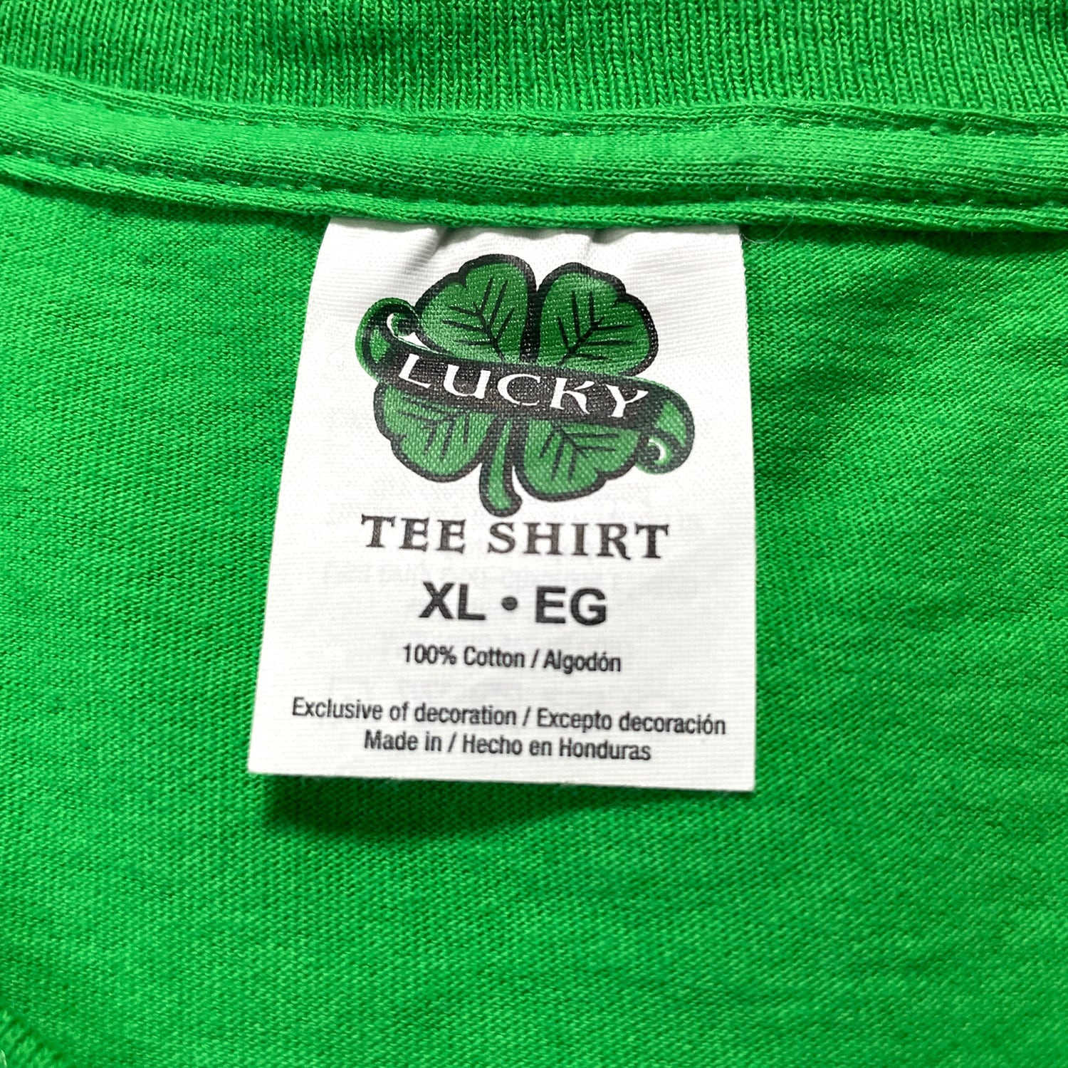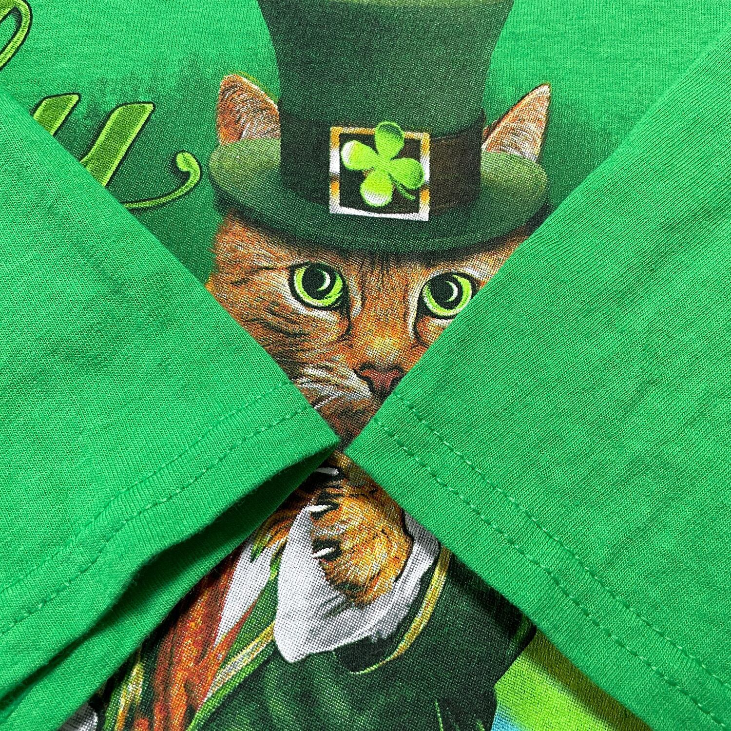 USA 古着 LUCKY ヴィンテージ コットン クルーネック クローバー ネコミーム Tシャツ メンズXL グリーン 猫 アニマル BA4505