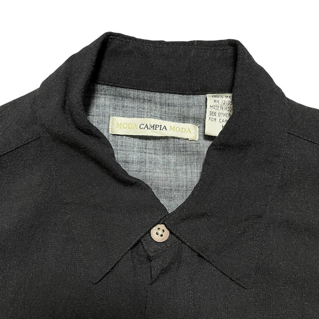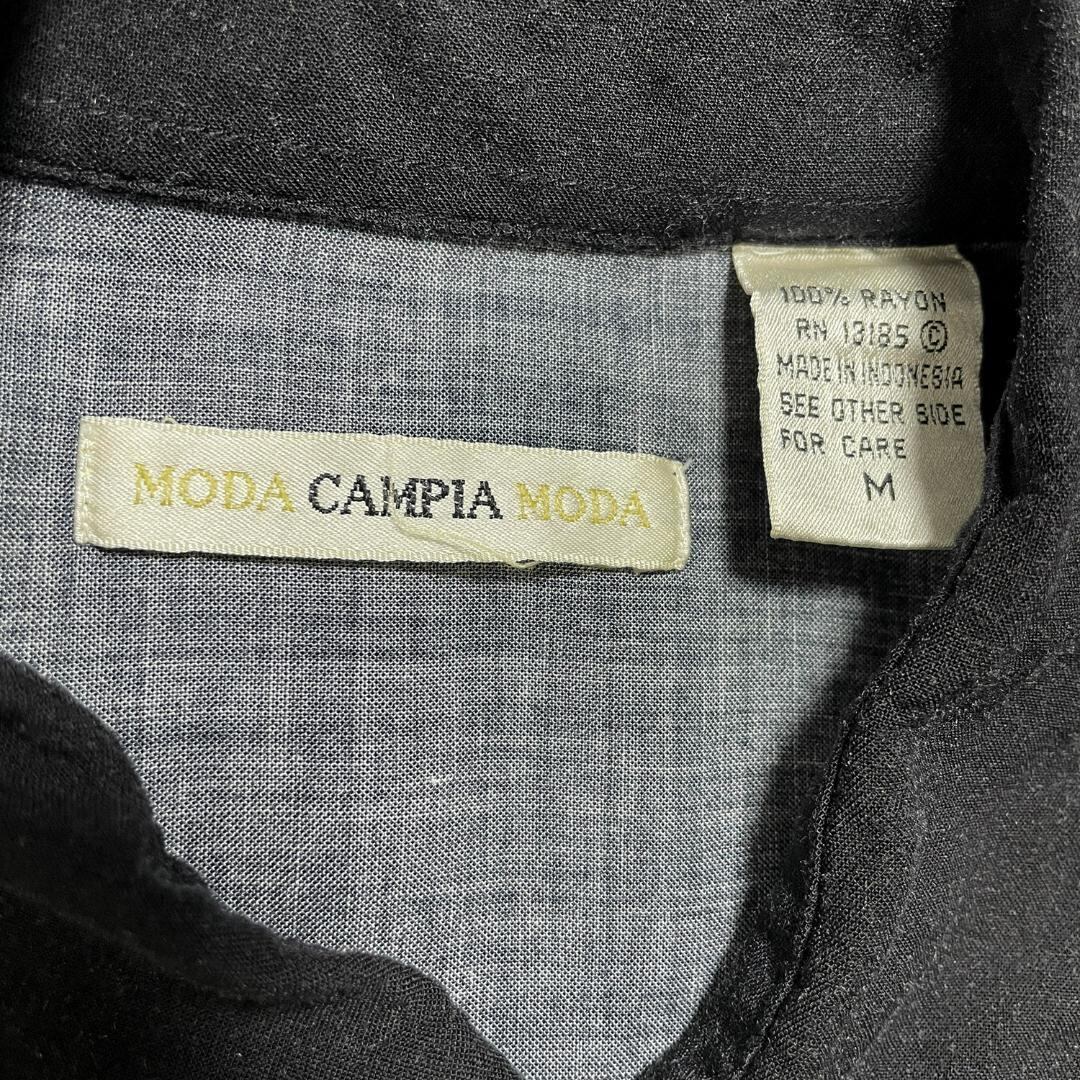 USA 古着 MODA CAMPIA MODA モダカンピアモダ レーヨン アロハシャツ ハワイアンシャツ パームツリー ストライプ ブラック メンズM BF2868