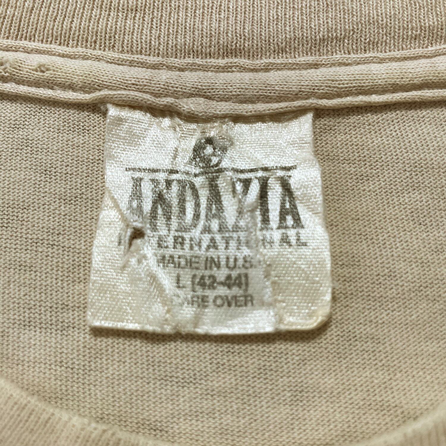 古着 USA製 90S ANDAZIA 不思議の国のアリス 白うさぎ Tシャツ ヴィンテージ プリント ベージュ メンズL クルーネック シングルステッチ BA4512
