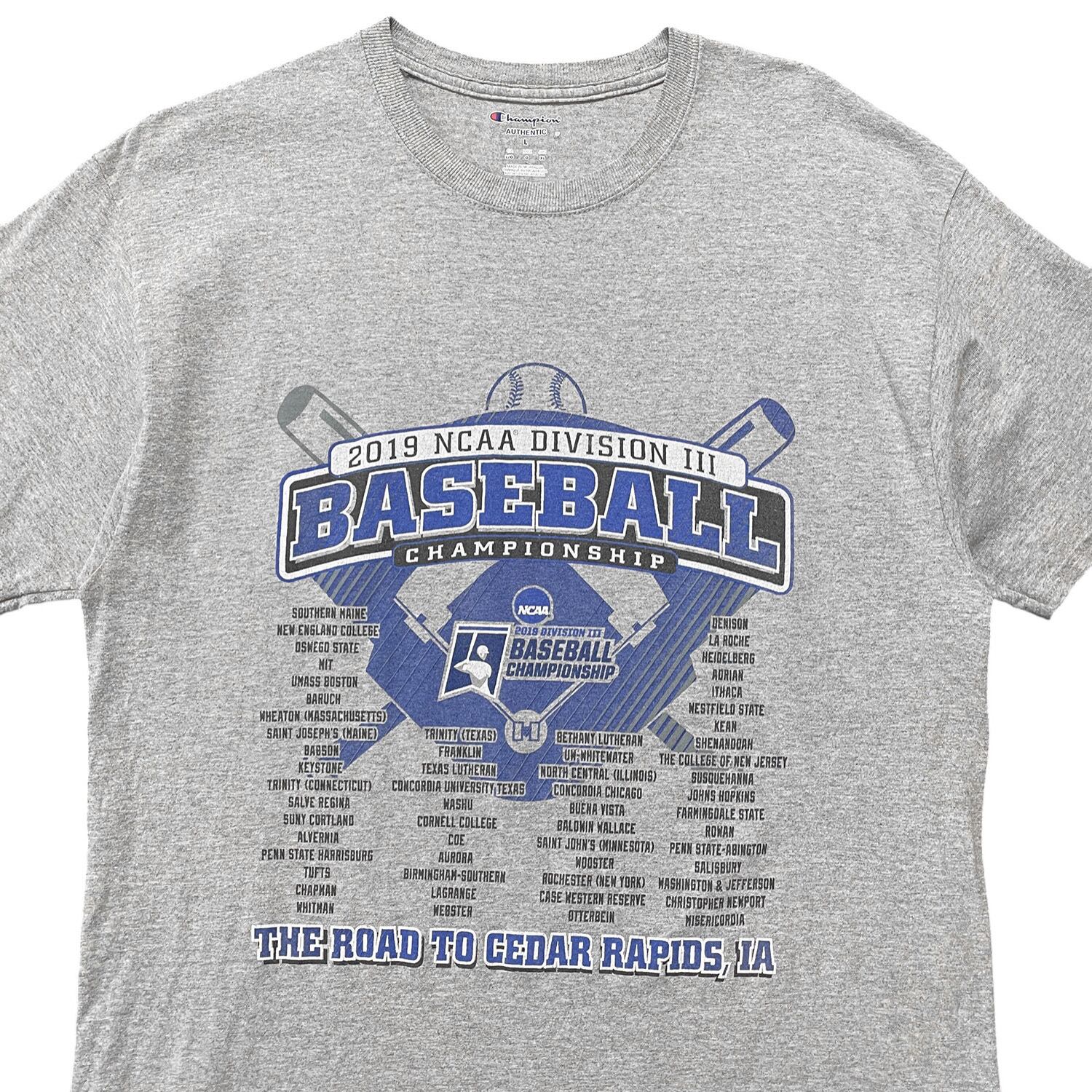 USA 古着 Champion チャンピオン NCAA カレッジベースボール Tシャツ プリント グレー メンズL クルーネック BA4514