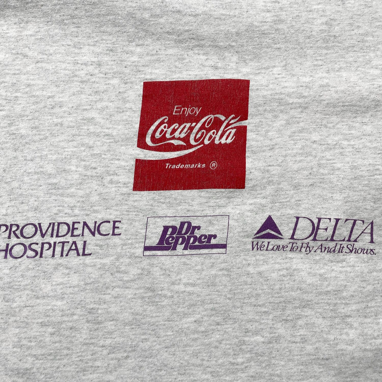 古着 USA製 90S マラソン大会 Tシャツ ヴィンテージ プリント プリント グレー コカコーラ ドクターペッパー シングルステッチ BA4534