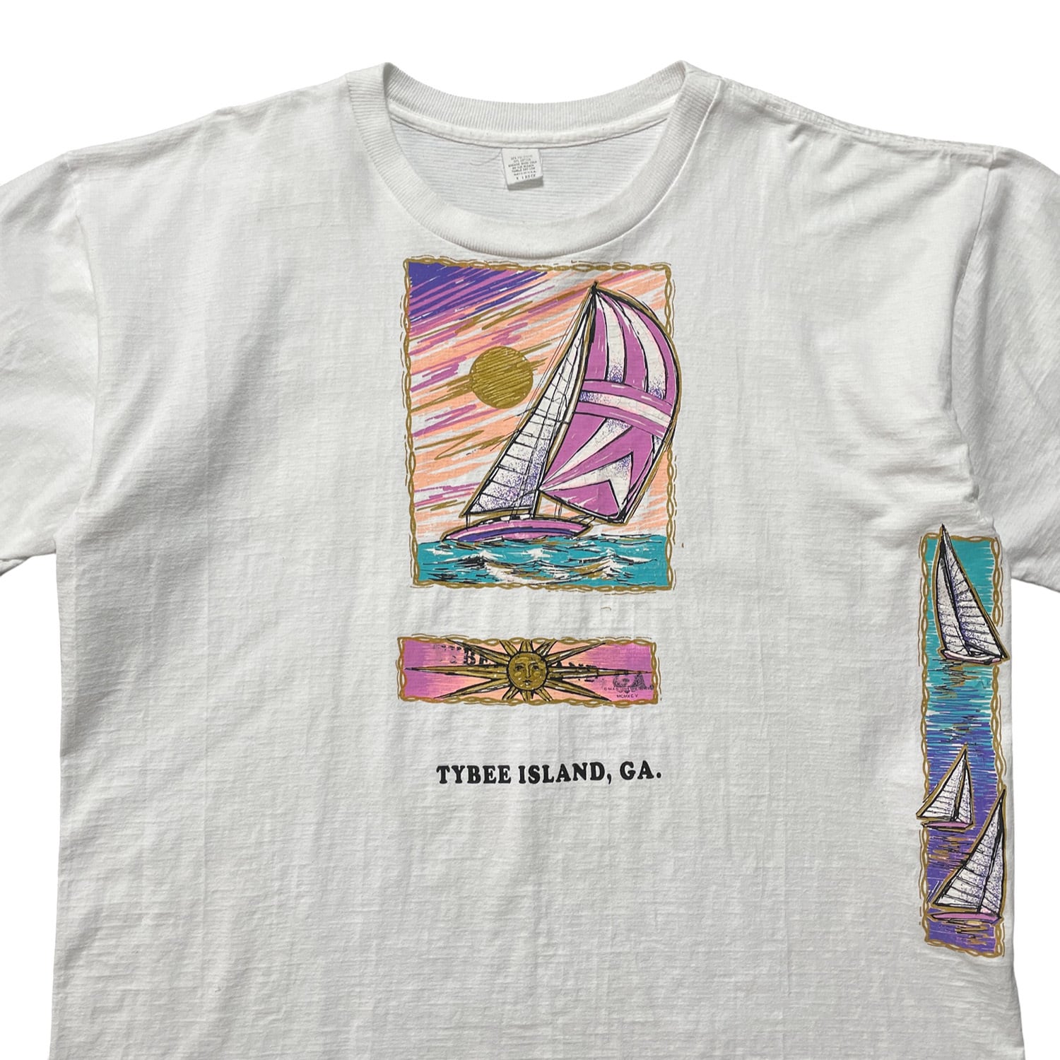 古着 90S USA製 ティビーアイランド Tシャツ ヴィンテージ ヨット プリント ホワイト メンズXL シングルステッチ 大きいサイズ BA4536