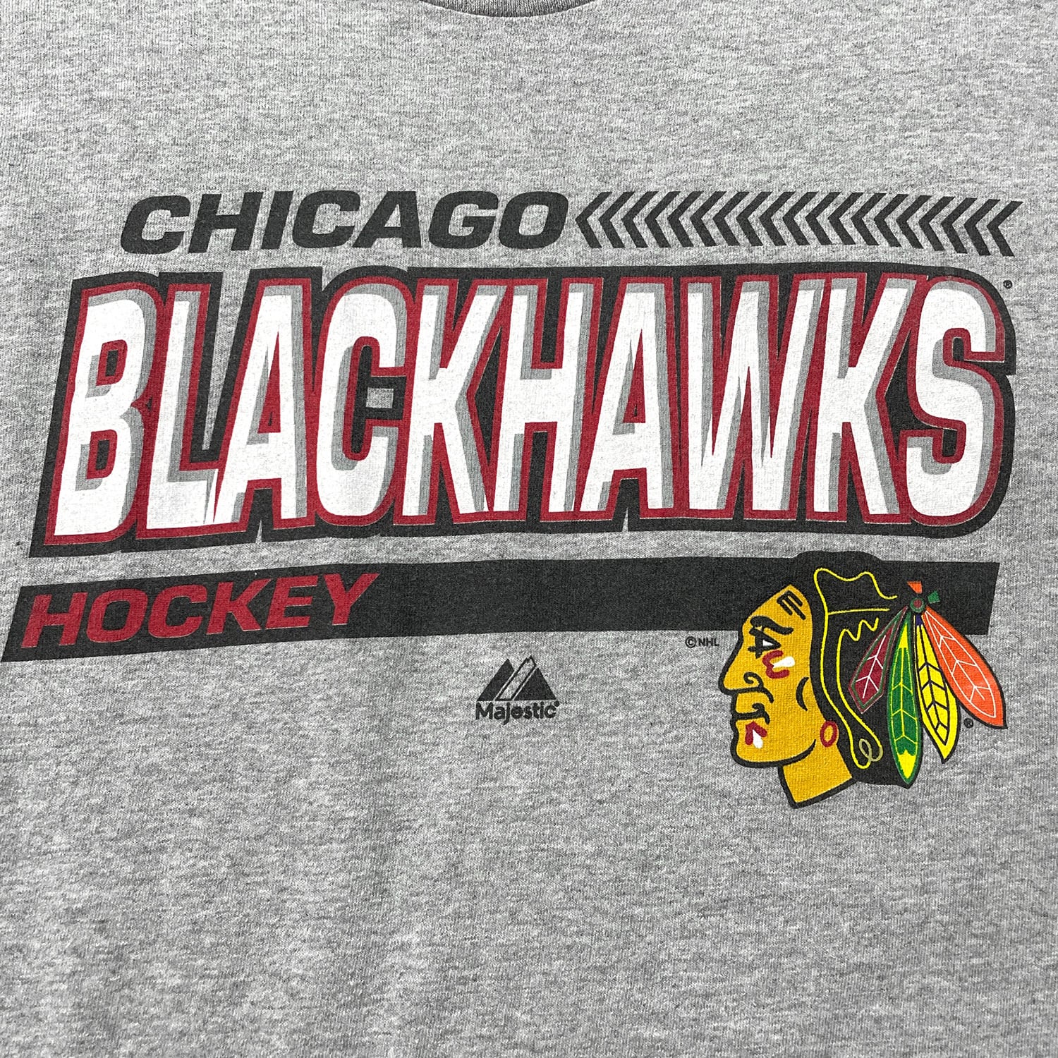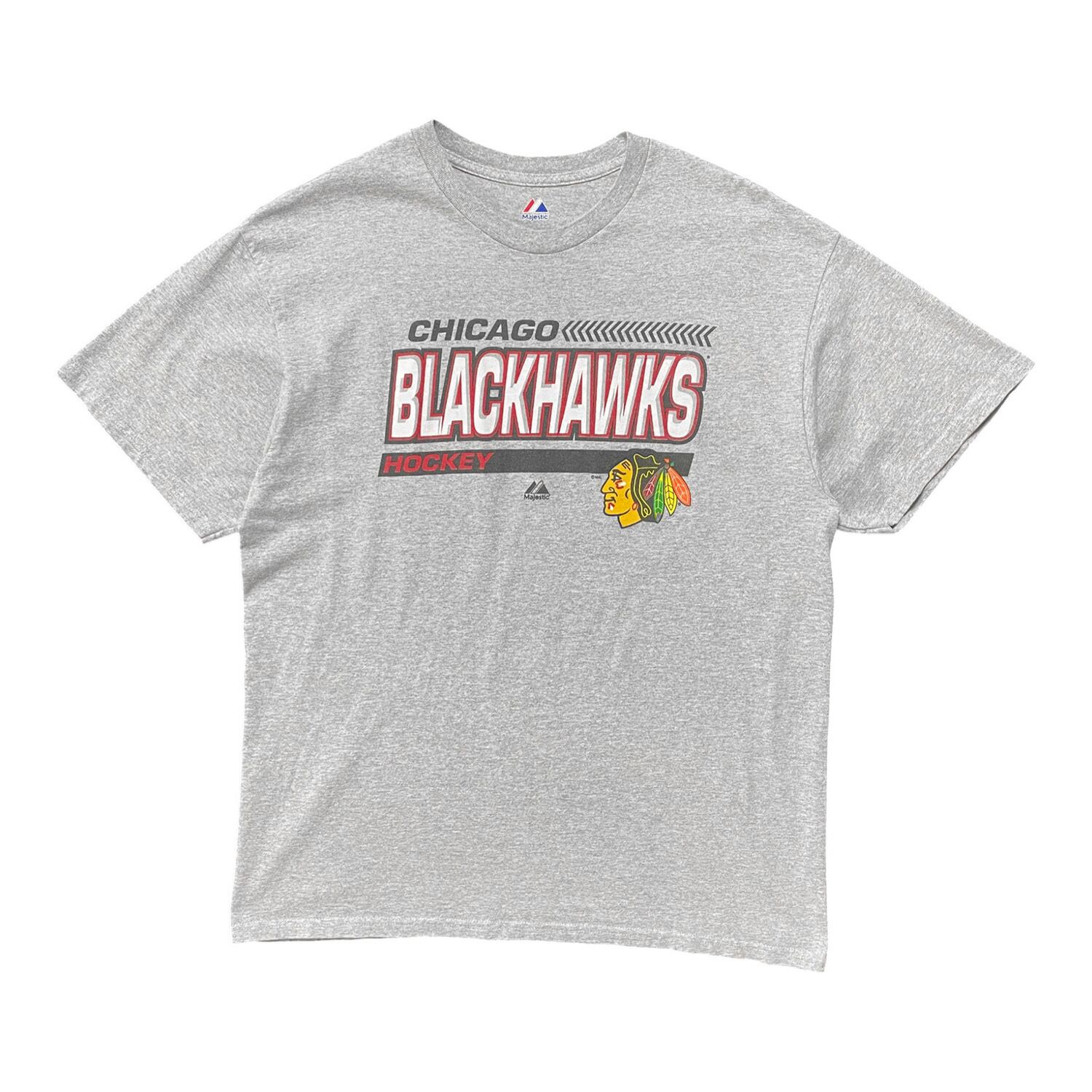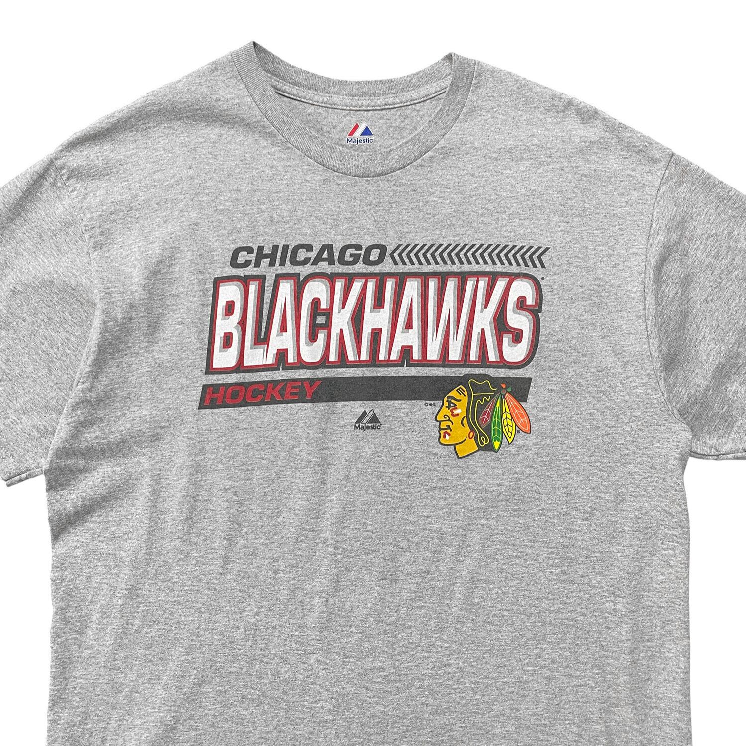 USA 古着 マジェスティック NHL シカゴブラックホークス Tシャツ ロゴ プリント グレー メンズXL クルーネック アイスホッケー BA4545