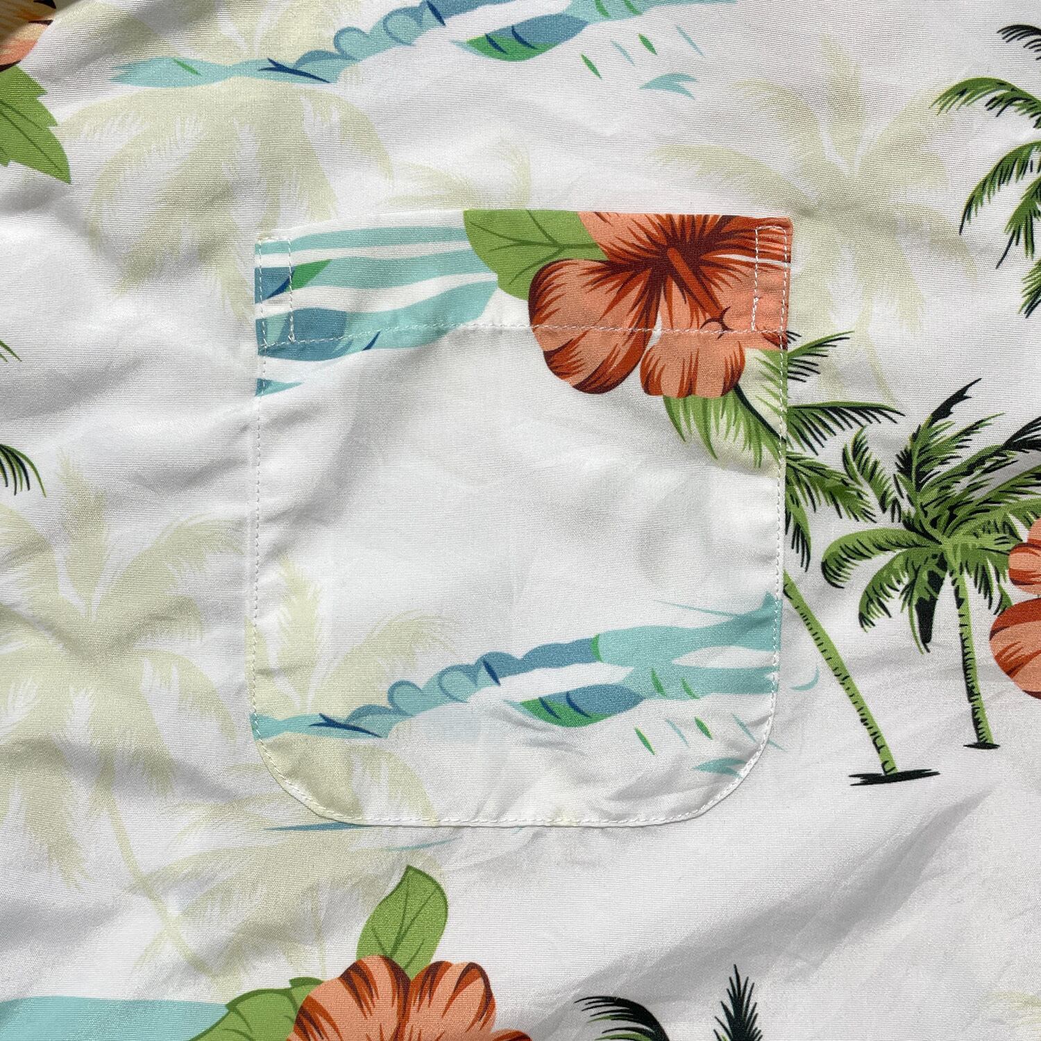 USA 古着 Tropical Strom トロピカルストーム ポリエステル 開襟 アロハシャツ ハワイアンシャツ ハイビスカス柄 ホワイト メンズXXL BF03831