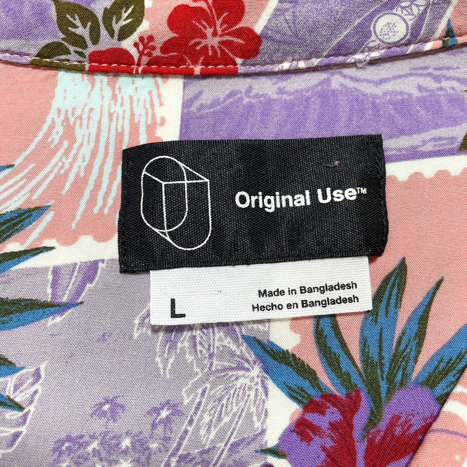 USA 古着 Original Use オリジナルユーズ レーヨン 開襟 アロハシャツ ハワイアンシャツ 花柄 総柄 ピンク メンズL BF03833