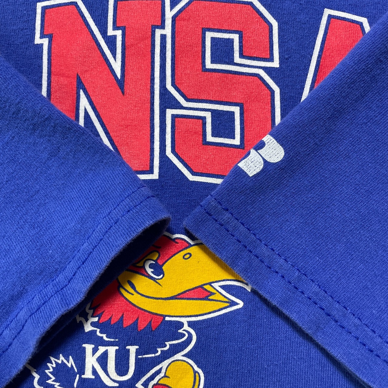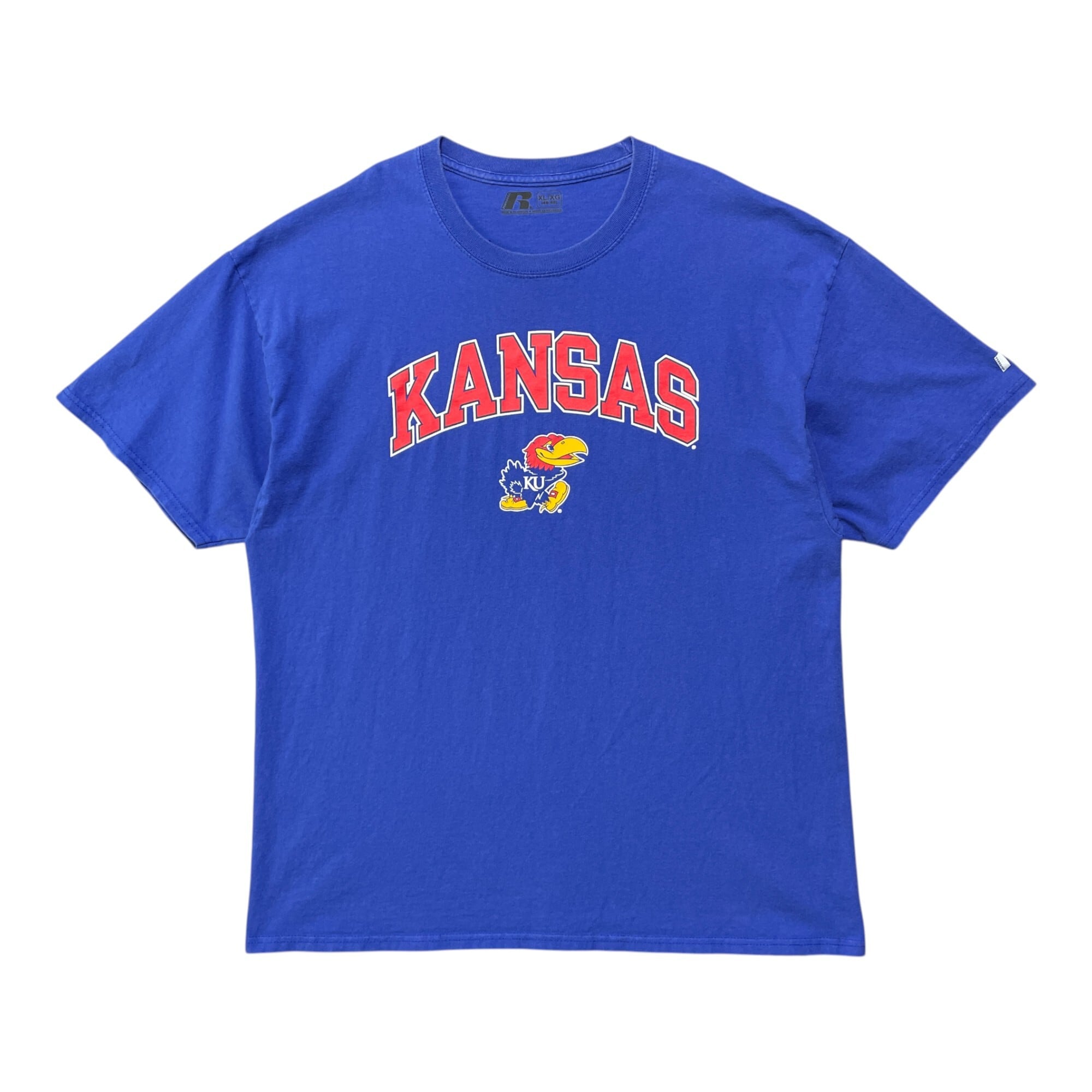USA 古着 カンザス大学 カレッジ Tシャツ ロゴ プリント ブルー メンズXL クルーネック BA4560