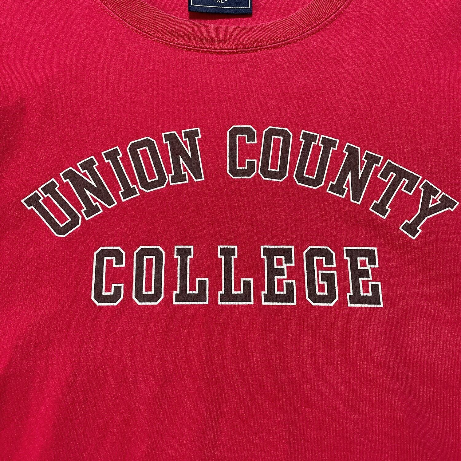 USA 古着 ユニオン大学 カレッジ Tシャツ ロゴ プリント レッド メンズXL クルーネック BA4564