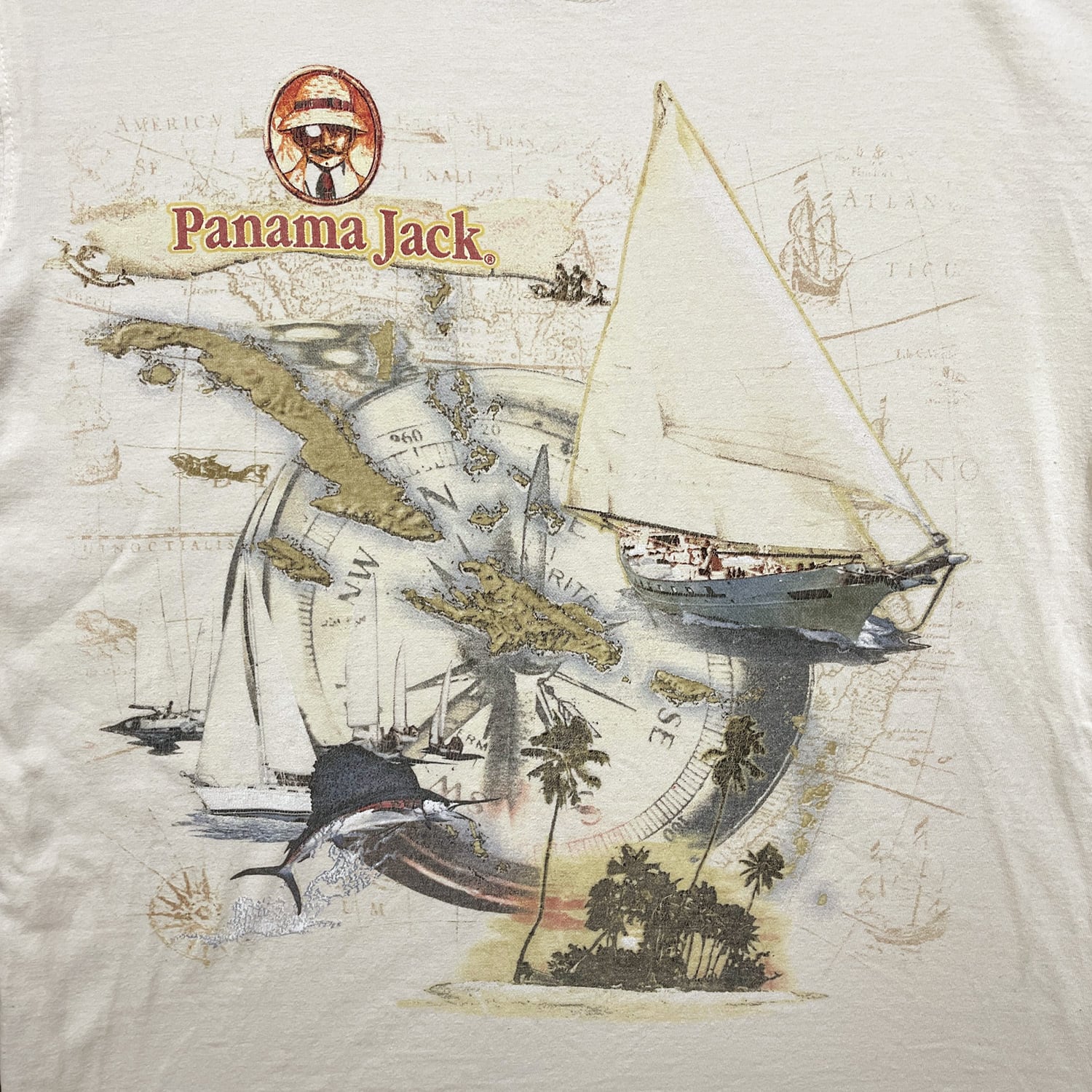 USA 古着 パナマジャック Tシャツ コンパス プリント ベージュ メンズM クルーネック バックプリント BA4725