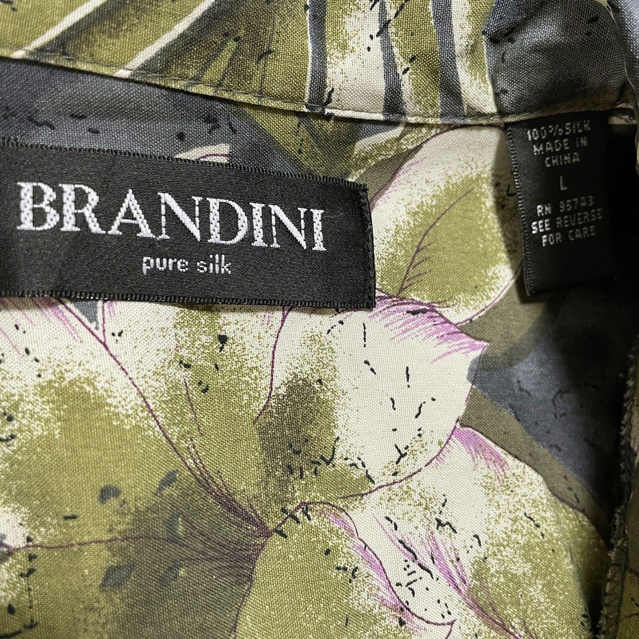 USA 古着 BRANDINI ブランディニ シルク アロハシャツ ハワイアンシャツ 開襟 リーフ柄 メンズL BF3851