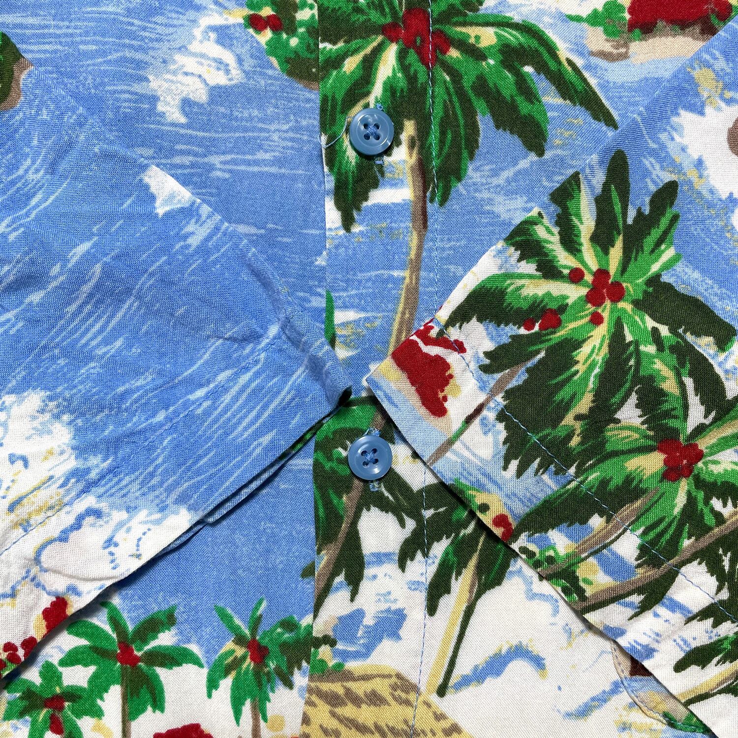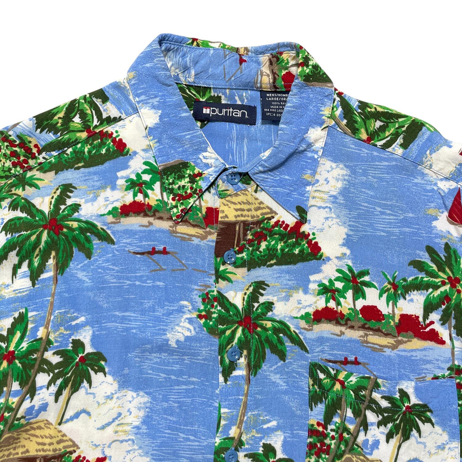 USA 古着 Puritan ピューリタン レーヨン アロハシャツ ハワイアンシャツ メンズL ライトブルー パームツリー BF3852