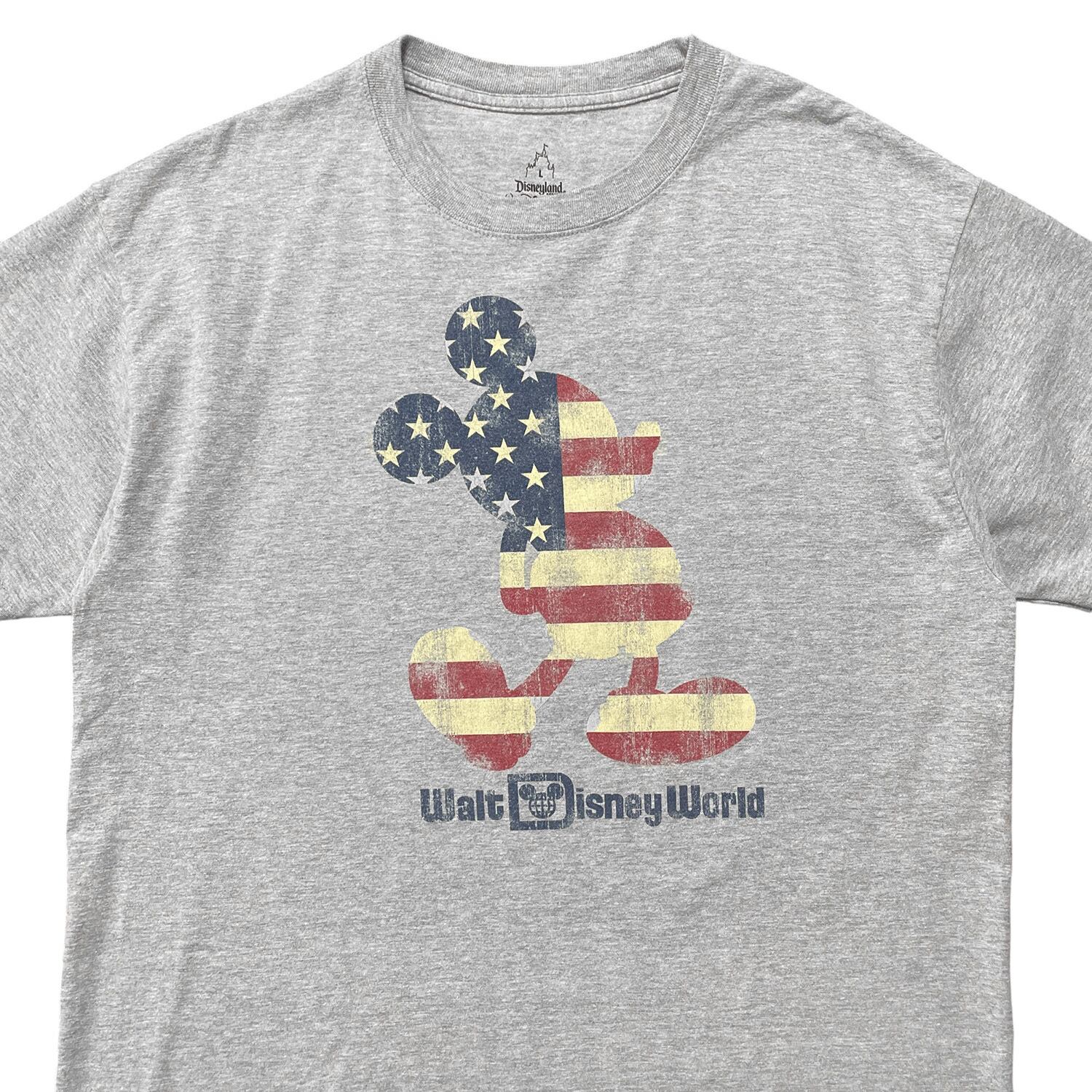USA 古着 Disney ディズニー ミッキーマウス Tシャツ 星条旗 プリント グレー メンズL クルーネック キャラクター BA4608