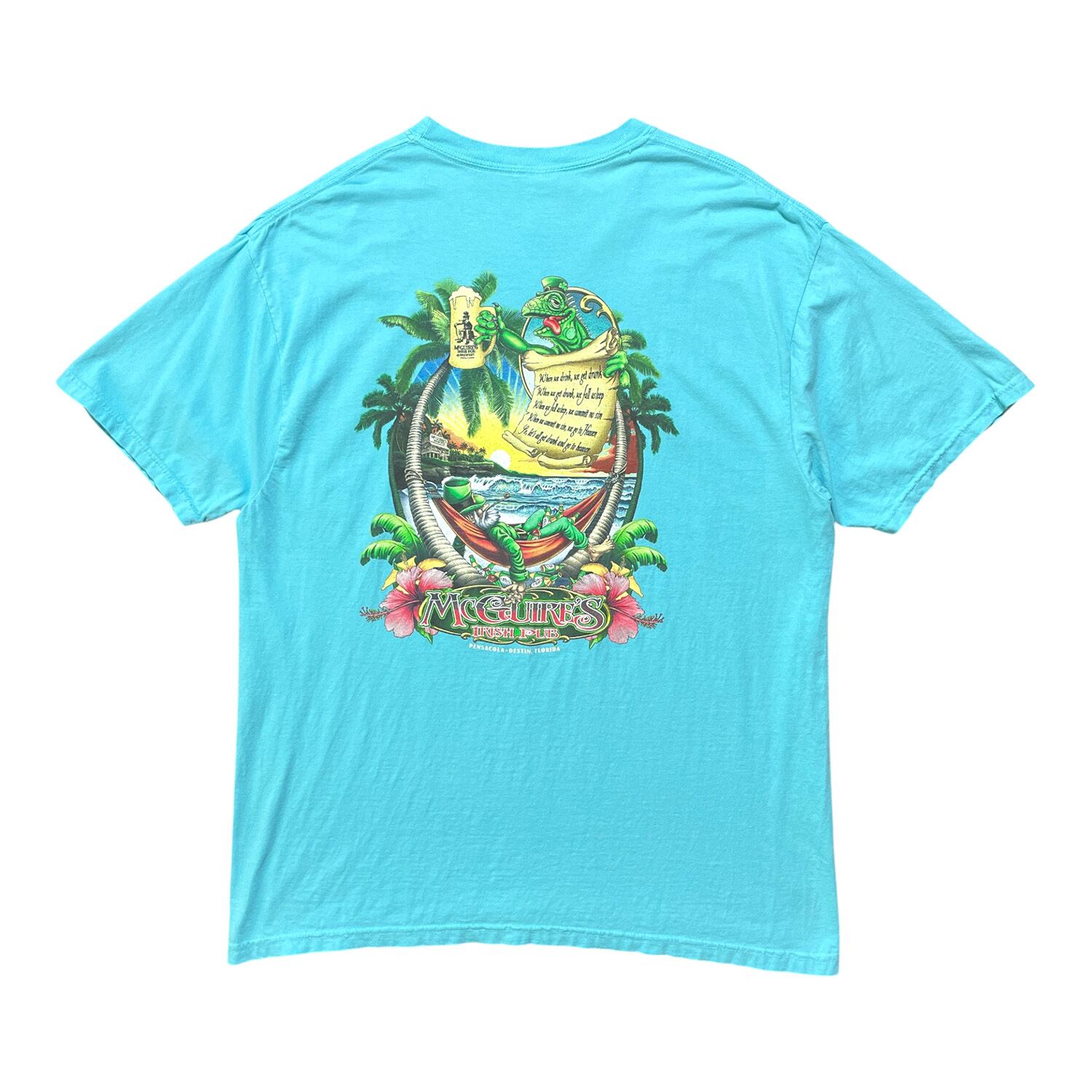USA 古着 アイリッシュパブ Tシャツ イグアナ プリント ライトブルー メンズXL クルーネック BA4711