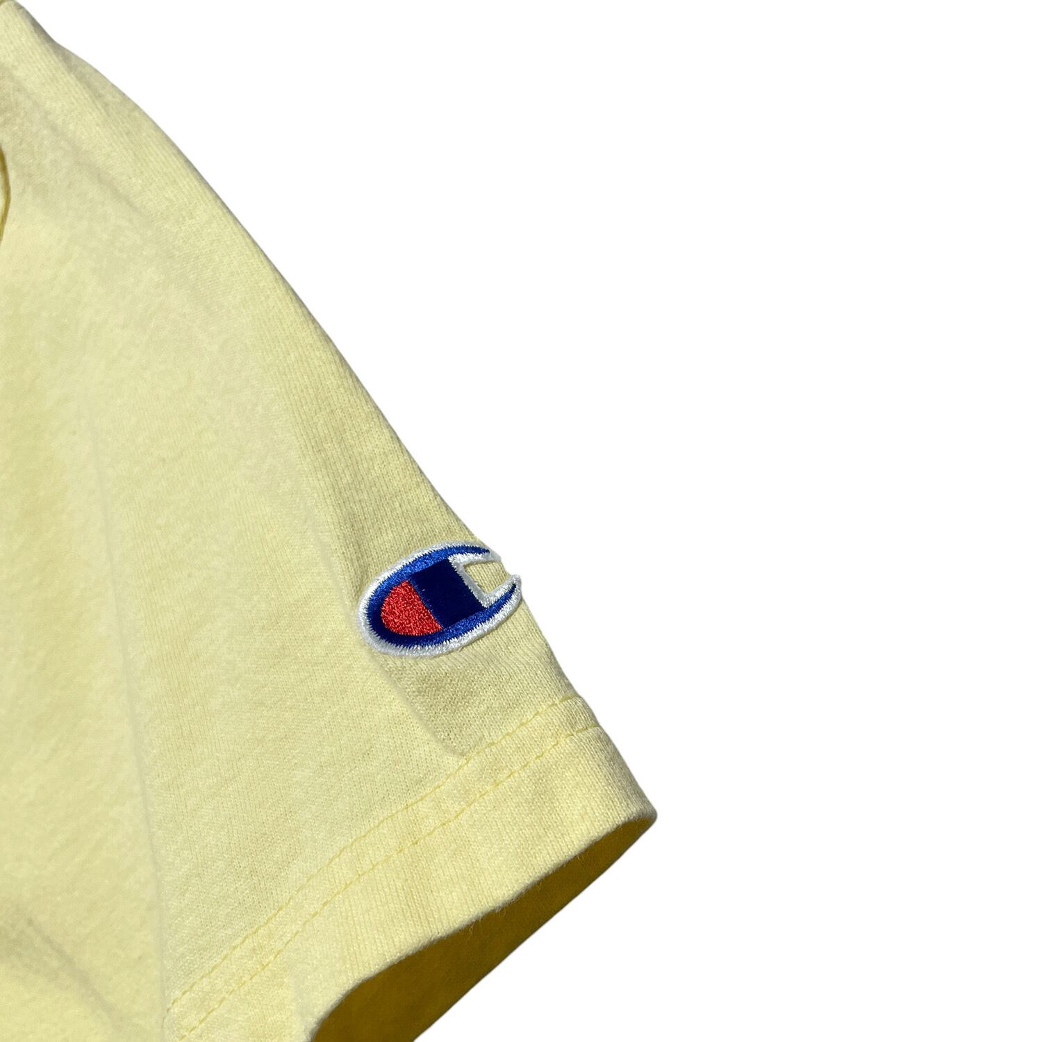 USA 古着 Champion チャンピオン US ネイビー Tシャツ ロゴ プリント メンズS 淡いイエロー クルーネック BA4734