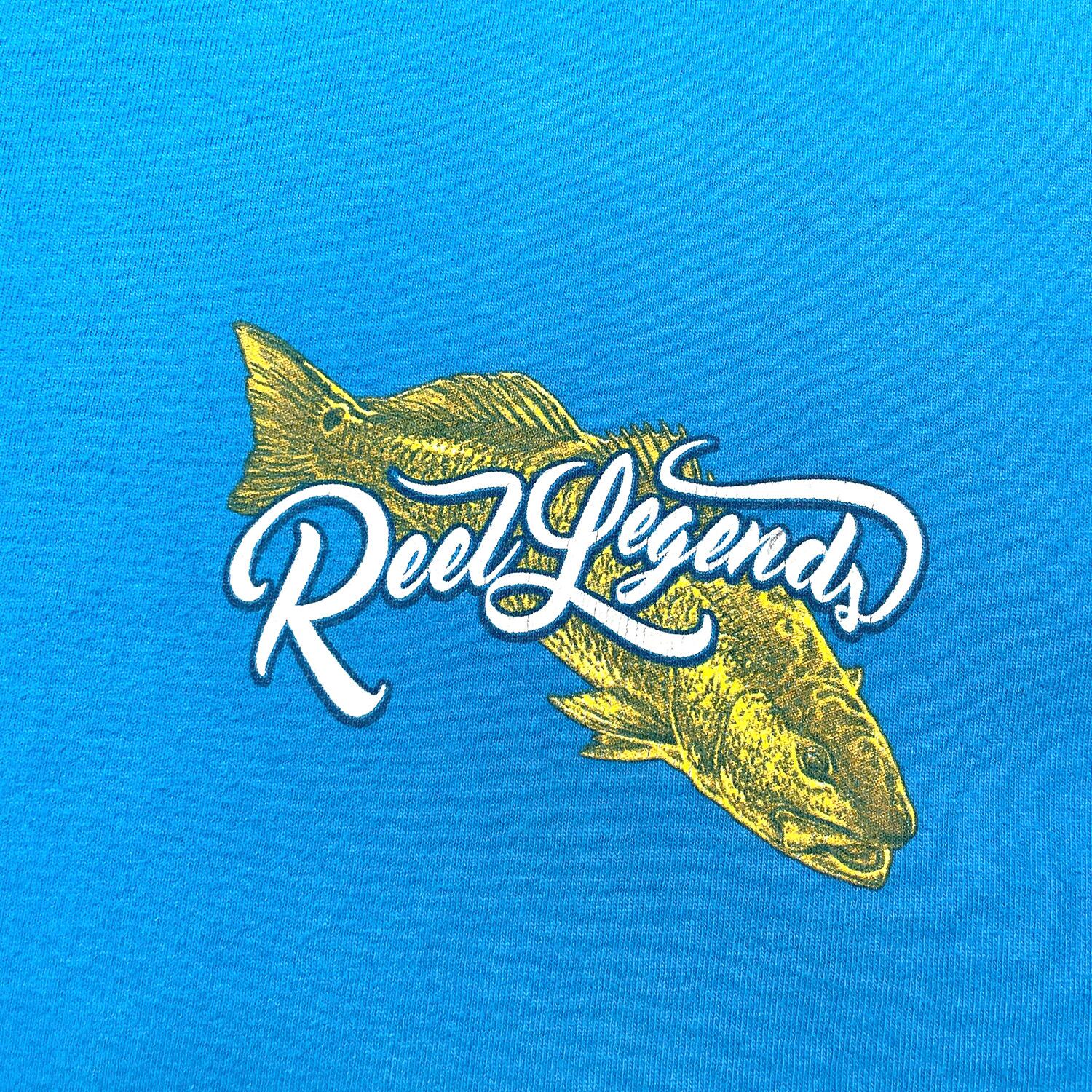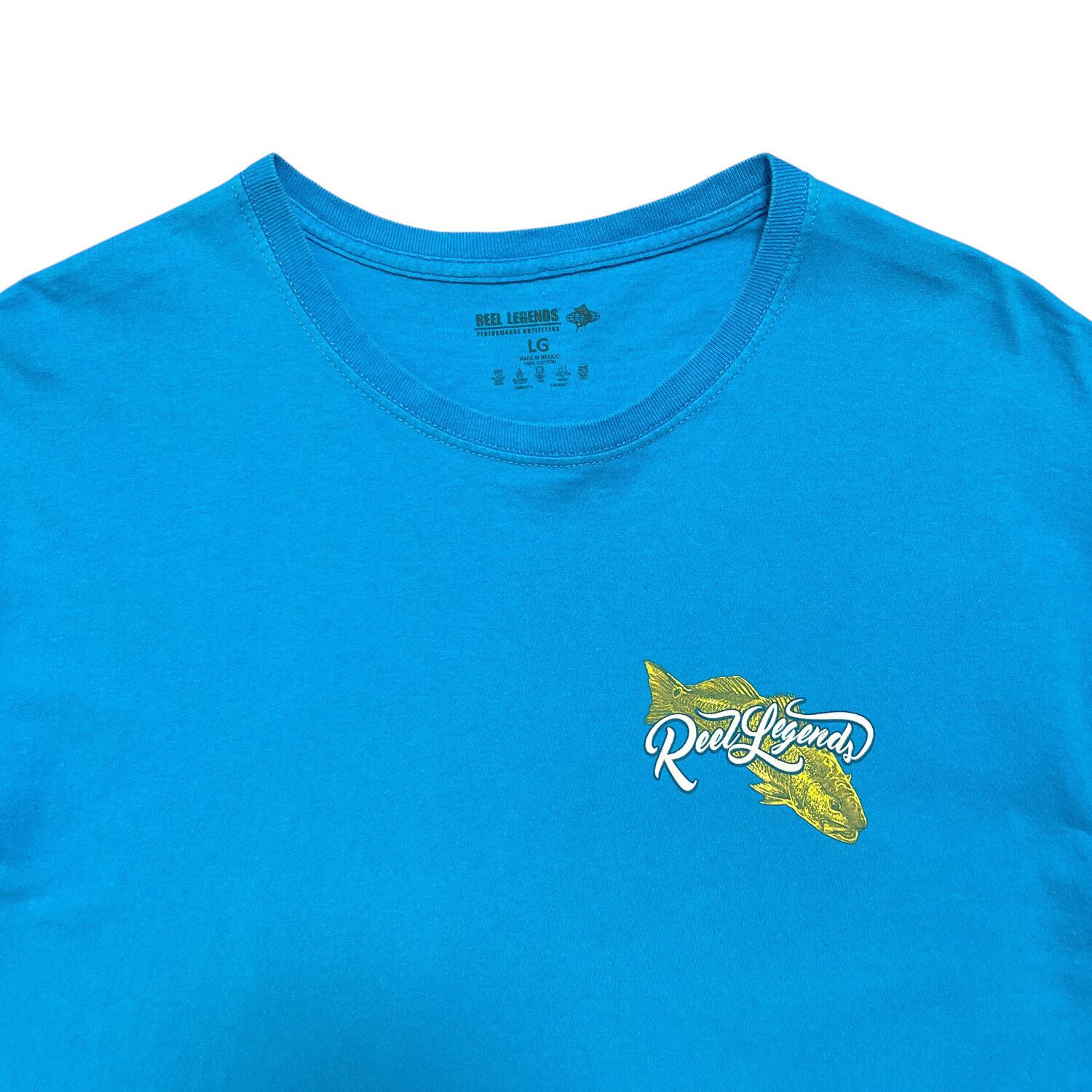 USA 古着 リールレジェンド Tシャツ 魚 プリント 釣り ブルー メンズL クルーネック BA4744
