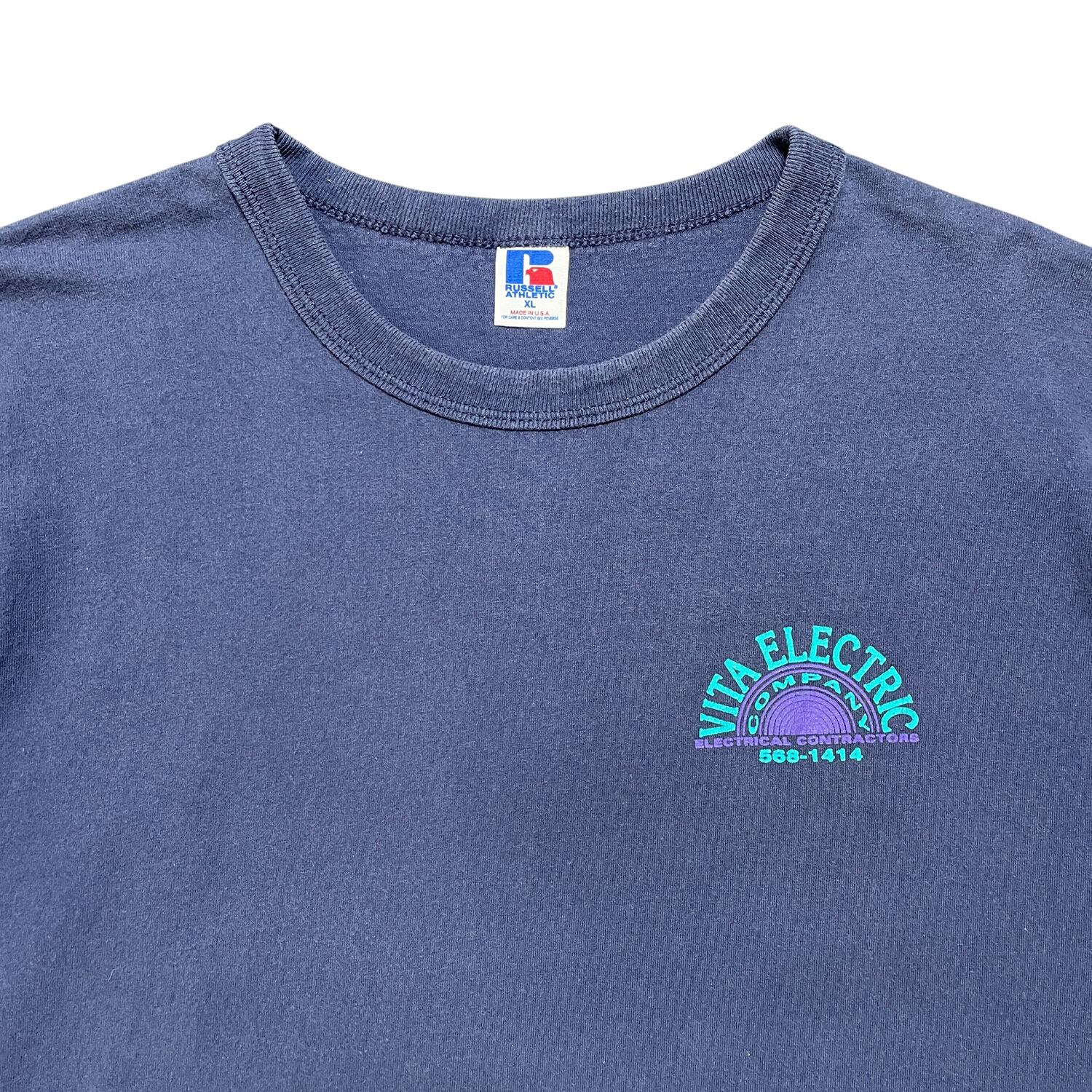 古着 USA製 90S 企業系 Tシャツ ヴィンテージ ロゴ プリント ネイビー メンズXL クルーネック BA4747