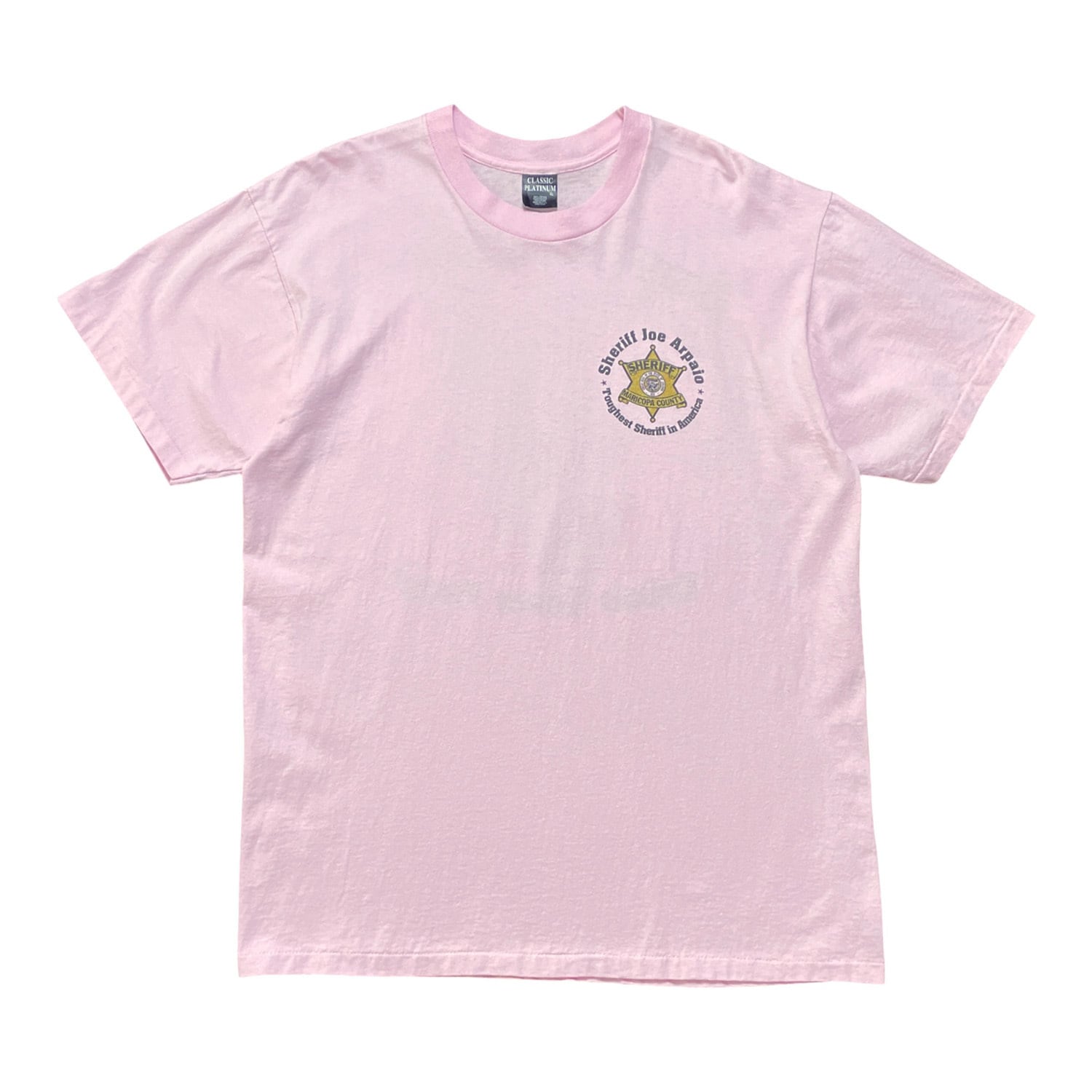 古着 USA製 90S ジョーアルパイオ保安官 Tシャツ ヴィンテージ プリント ピンク メンズXL シングルステッチ クルーネック BA4753