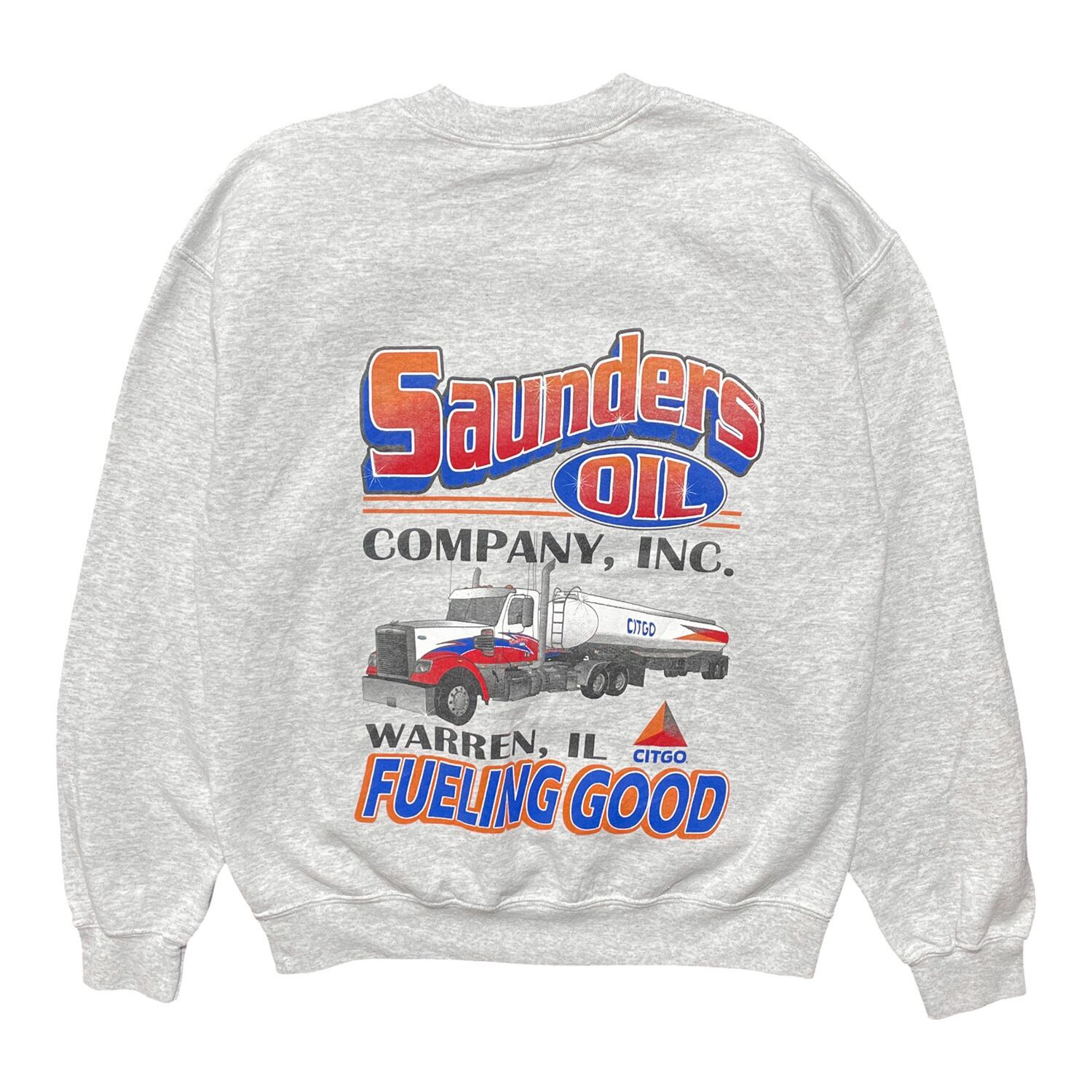 USA 古着 サンダース石油会社 企業系 スウェット トレーナー ロゴ バック プリント グレー メンズM クルーネック BD2363