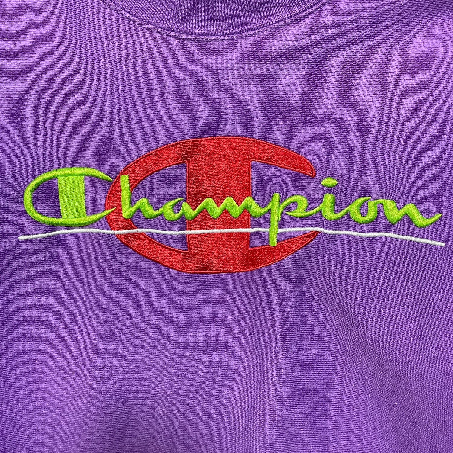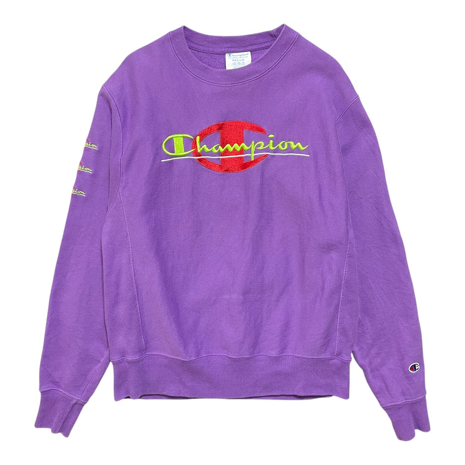 USA 古着 Champion チャンピオン リバースウィーブ トレーナー スウェット 刺繍 プリント メンズM パープル BD2378