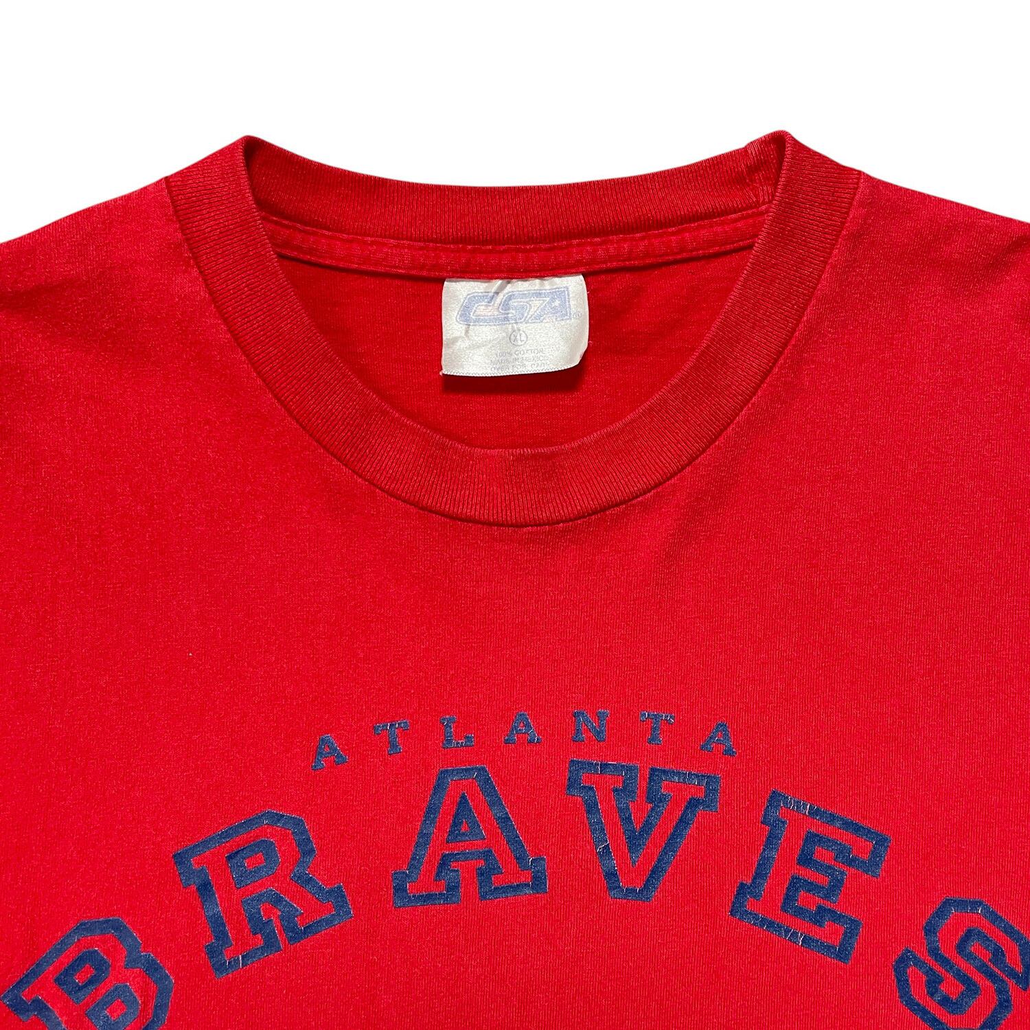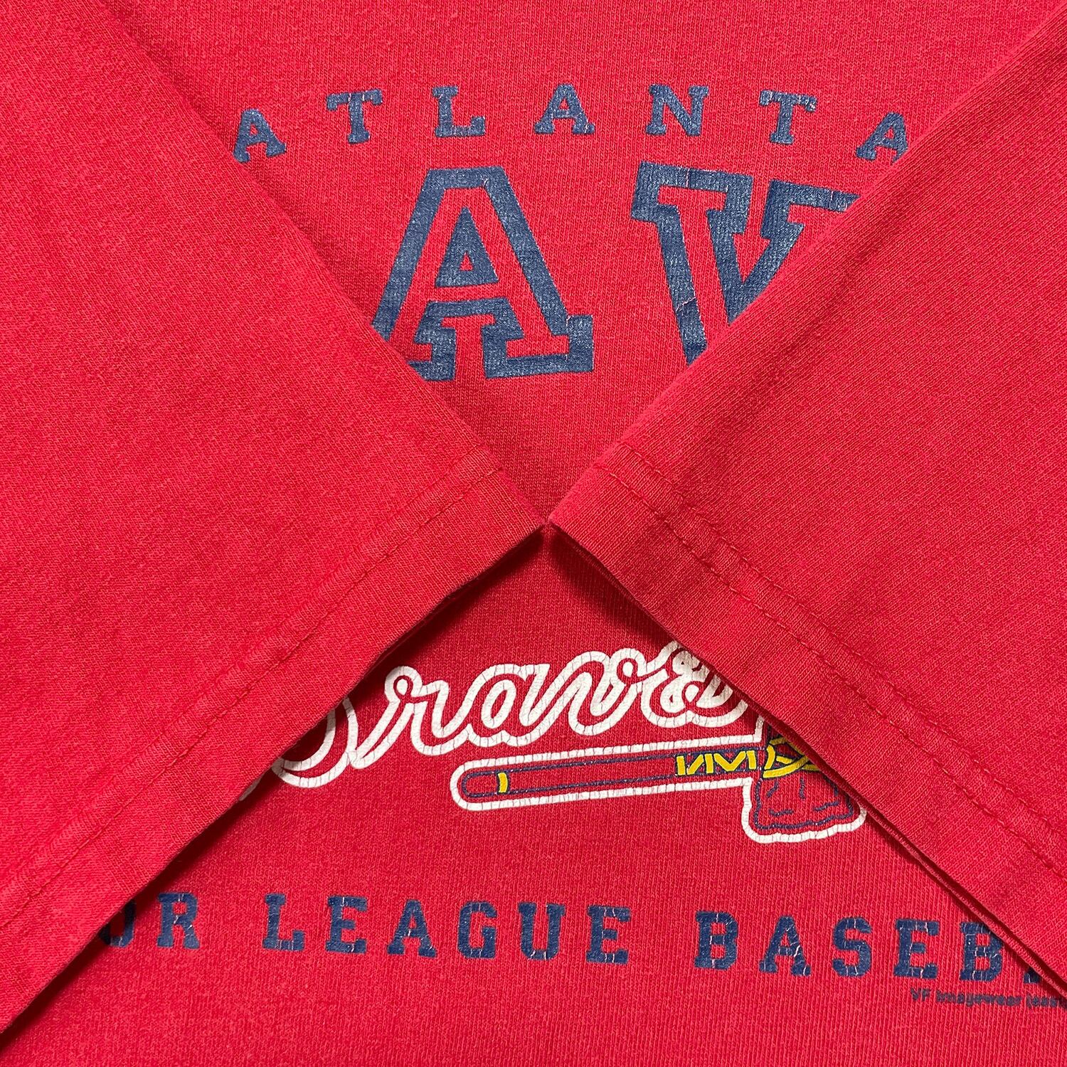USA 古着 00S MLB アトランタブレーブス Tシャツ ロゴ プリント レッド メンズXL クルーネック メジャーリーグ BA4691