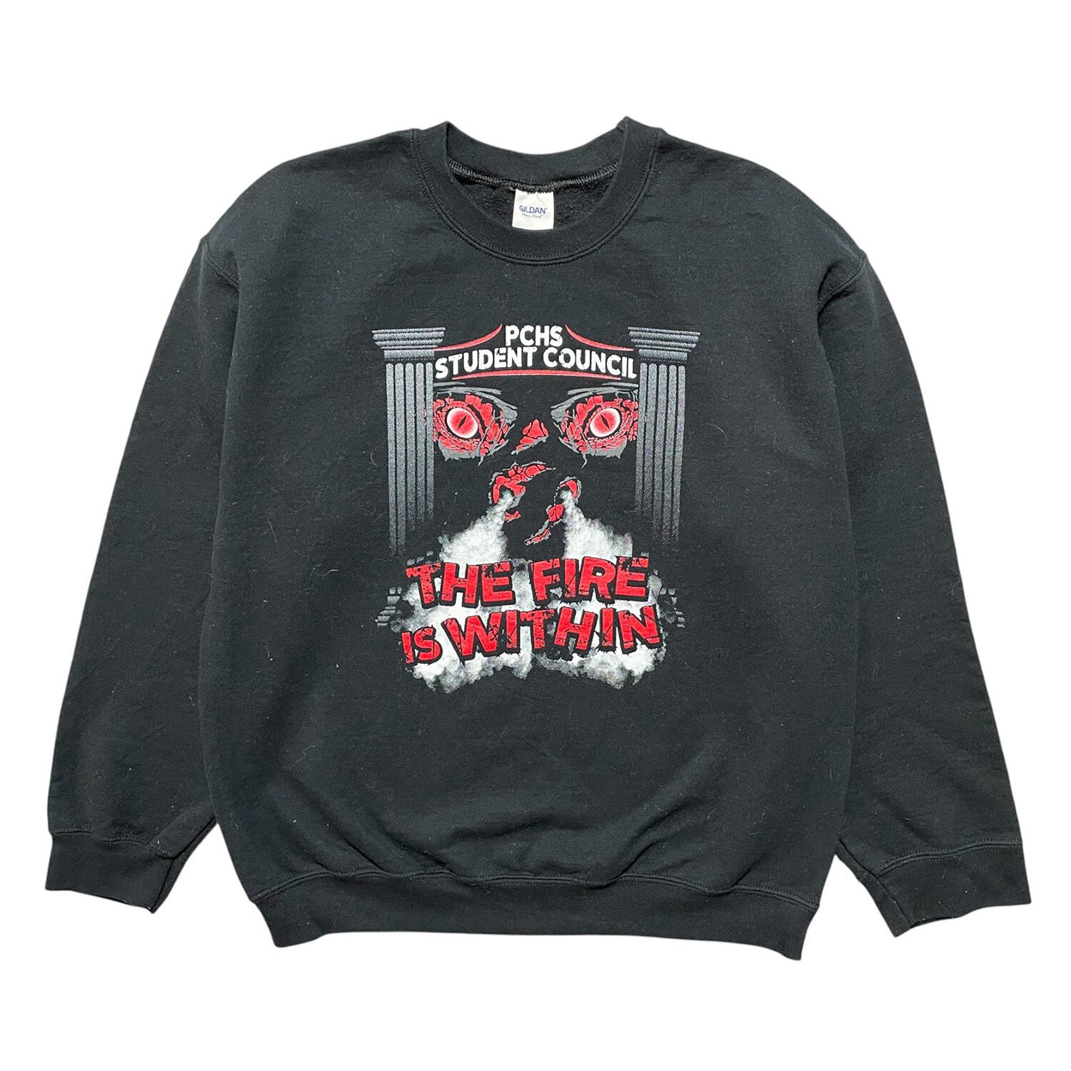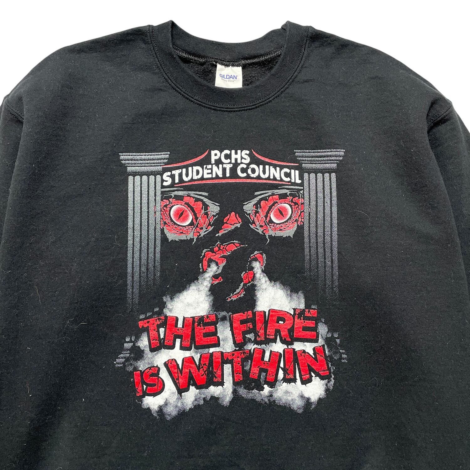 USA 古着 ハイスクール スウェット トレーナー プリント ブラック メンズM クルーネック BD2381