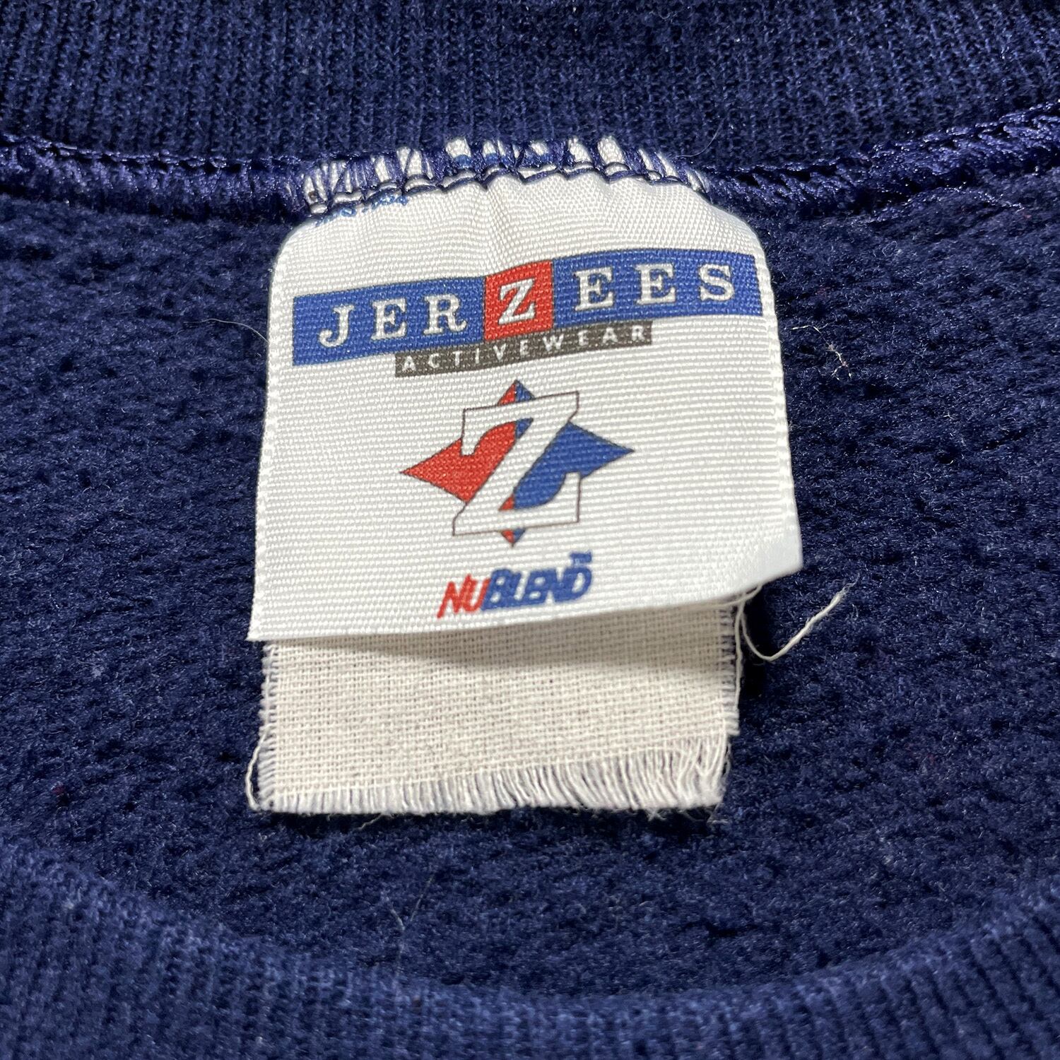 USA 古着 NFL ニューヨークジャイアンツ スウェット トレーナー ロゴ プリント ネイビー メンズL クルーネック フットボール BD2382