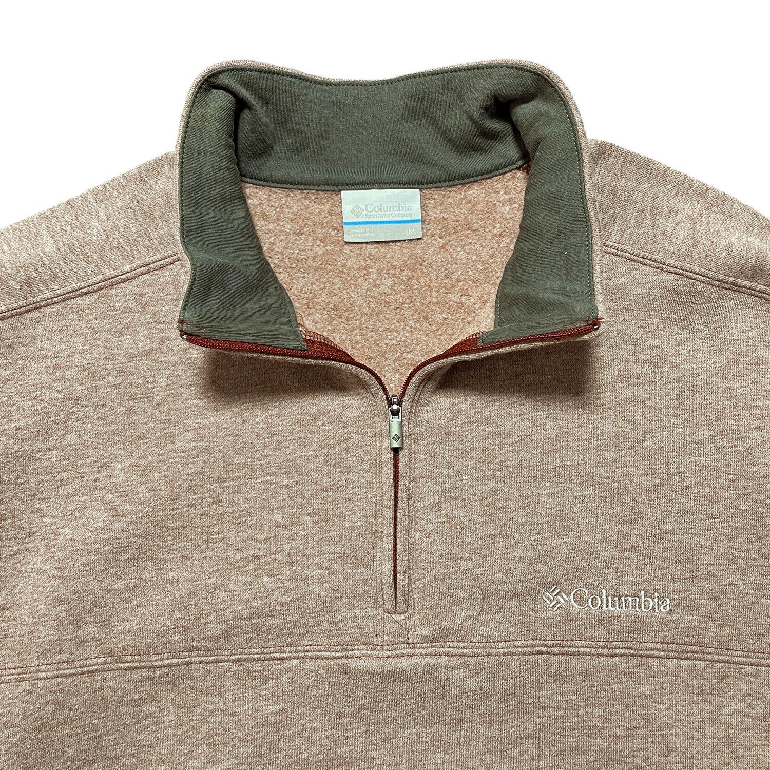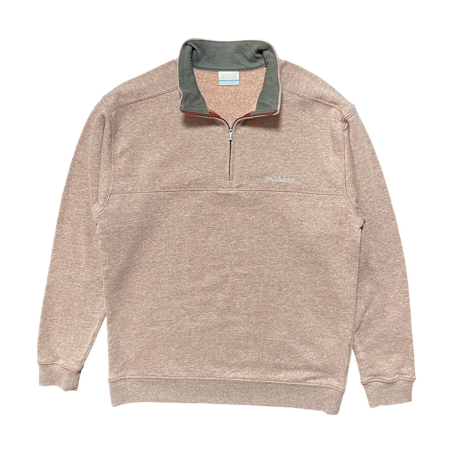 USA 古着 Columbia コロンビア スウェット トレーナー 刺繍 ロゴ メンズM パープル系 ハーフジップ BD2404