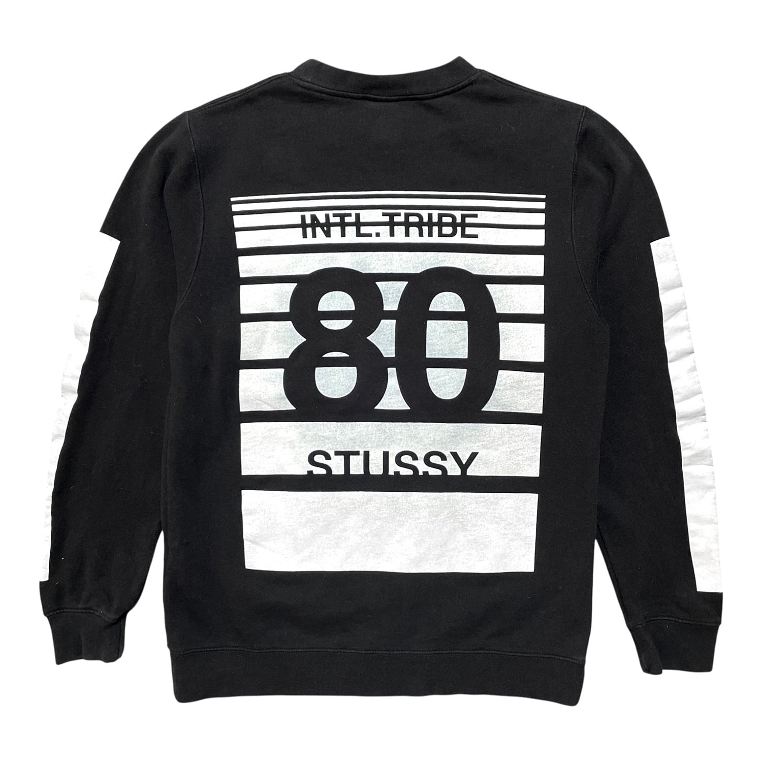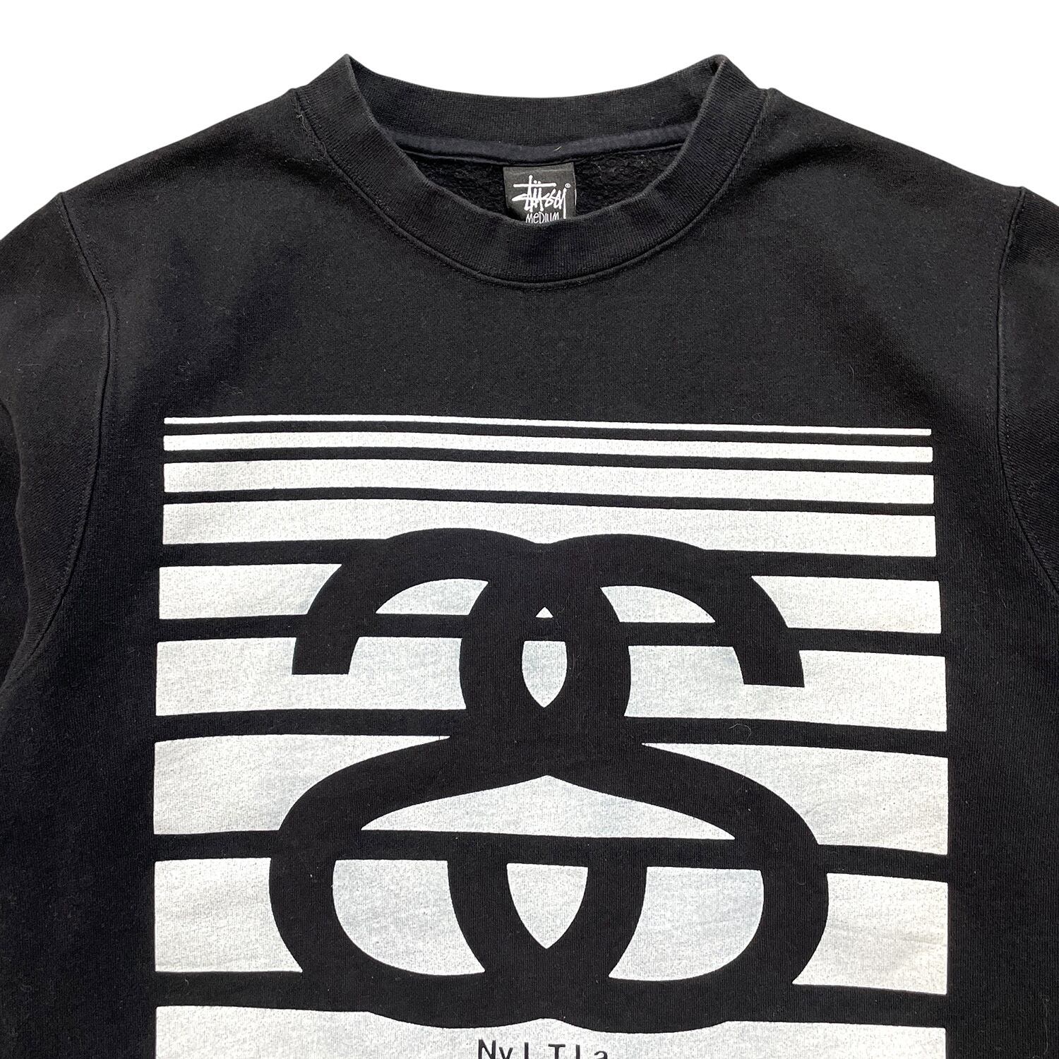 USA 古着 STUSSY ステューシー SS 80 Fade スウェット トレーナー シャネルロゴ プリント ブラック メンズM クルーネック BD2429