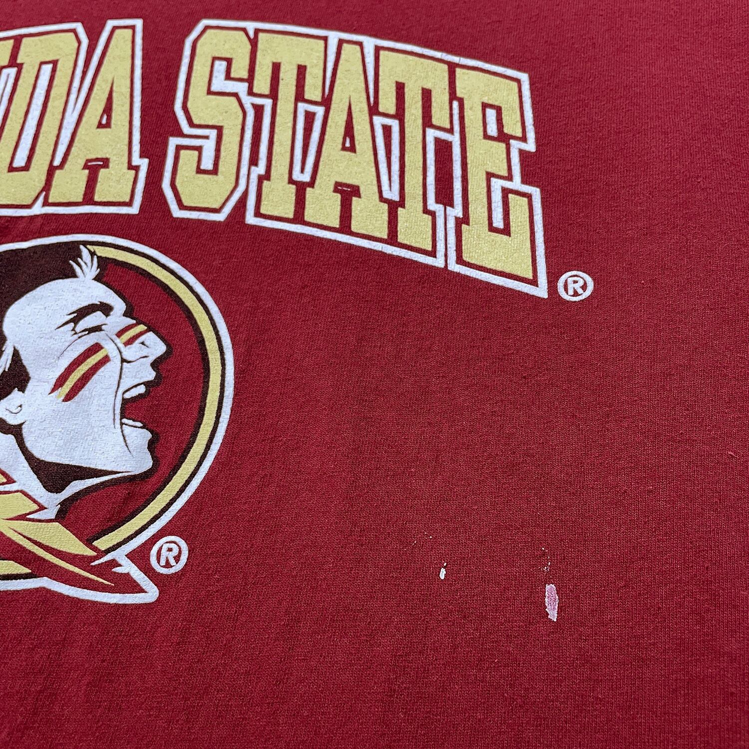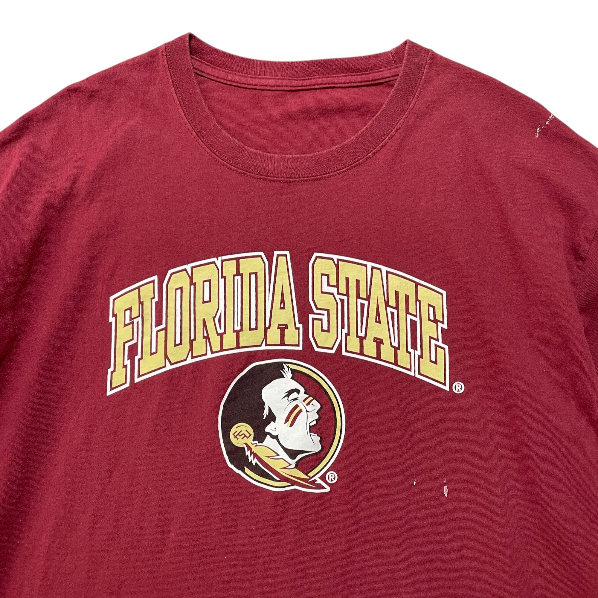 USA 古着 フロリダ州立大学 カレッジ Tシャツ プリント ボルドー メンズL 程度 クルーネック フットボール BA4630