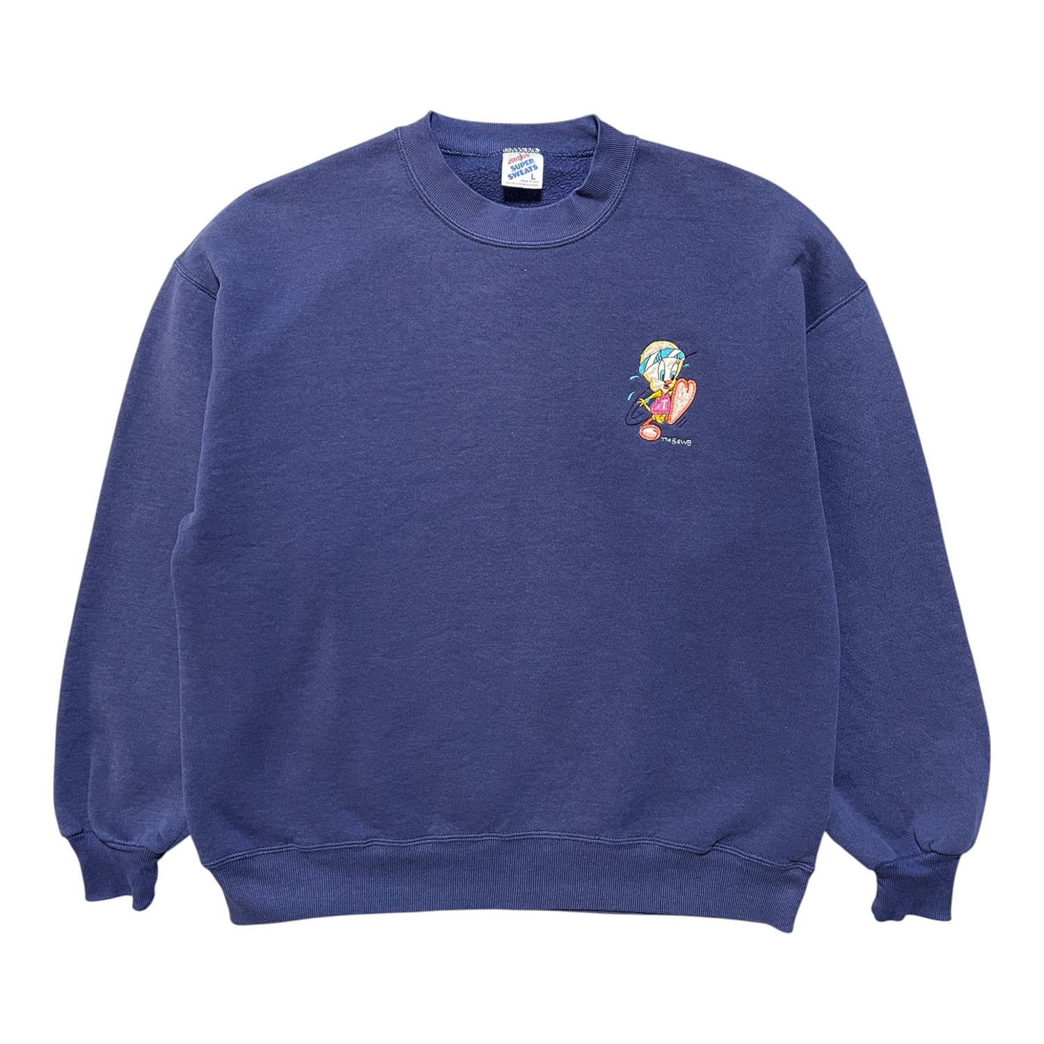 古着 USA製 90S ルーニーテューンズ トゥイーティー ヴィンテージ スウェット トレーナー 刺繍 ネイビー メンズL クルーネック BD2419