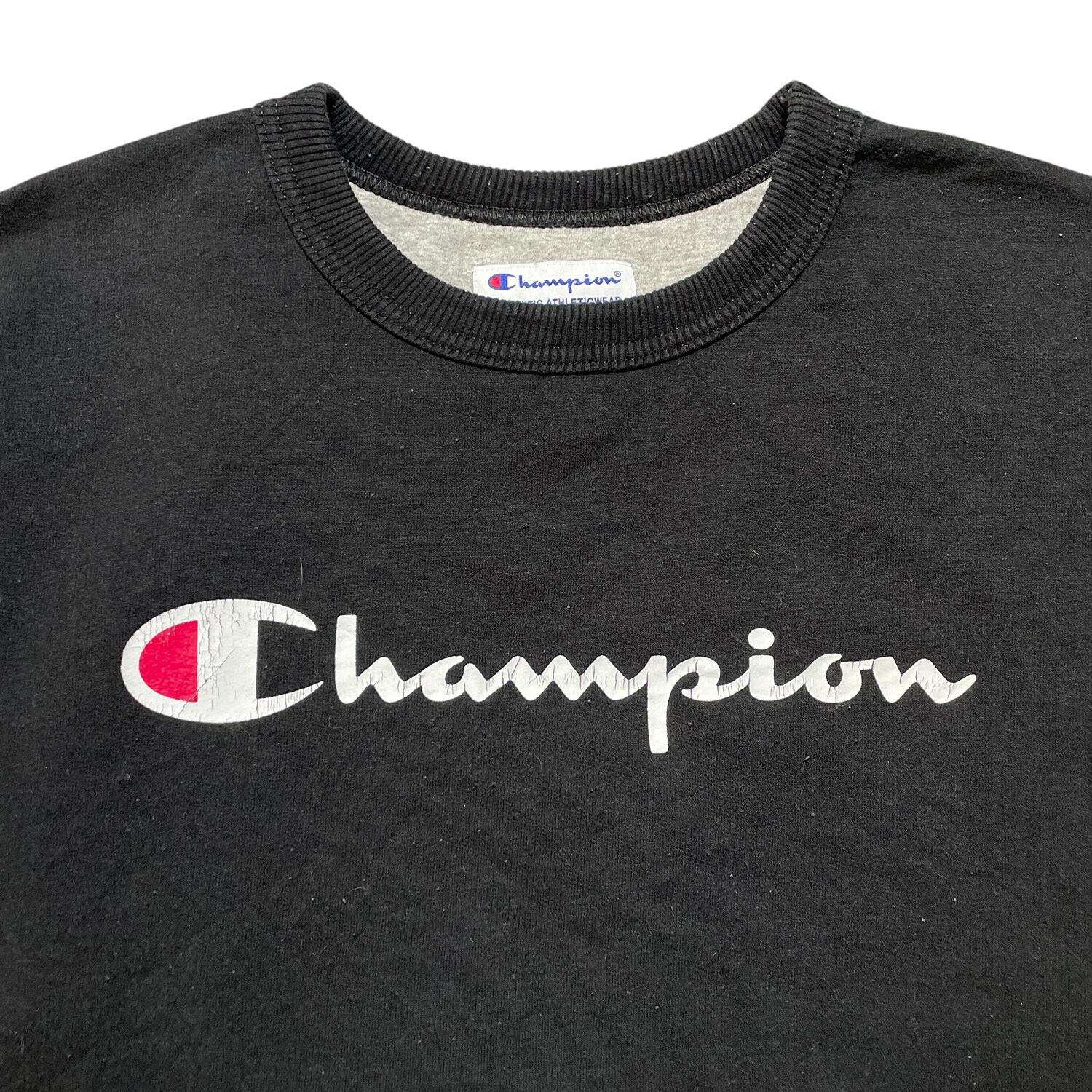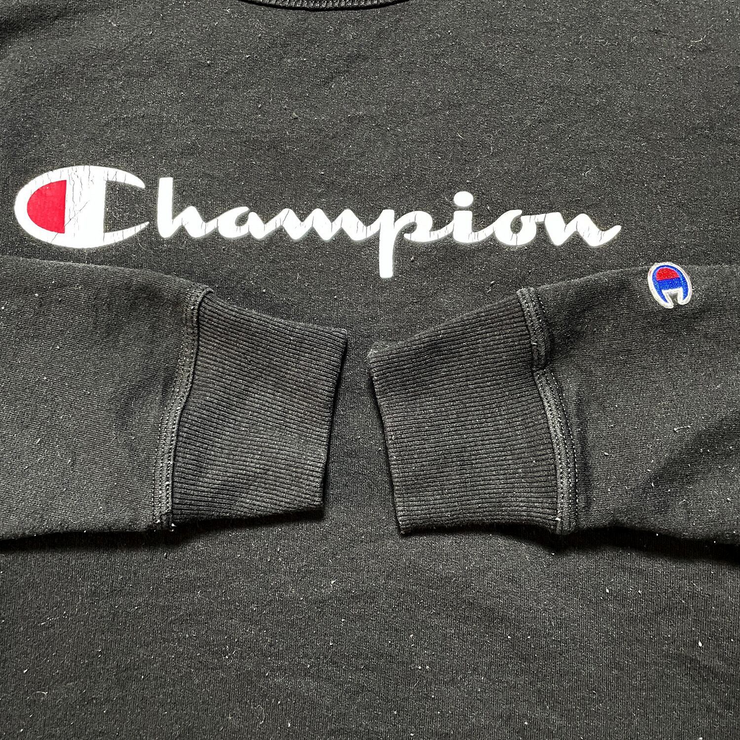 USA 古着 Champion チャンピオン スウェット トレーナー ロゴ プリント ブラック メンズM クルーネック BD2420