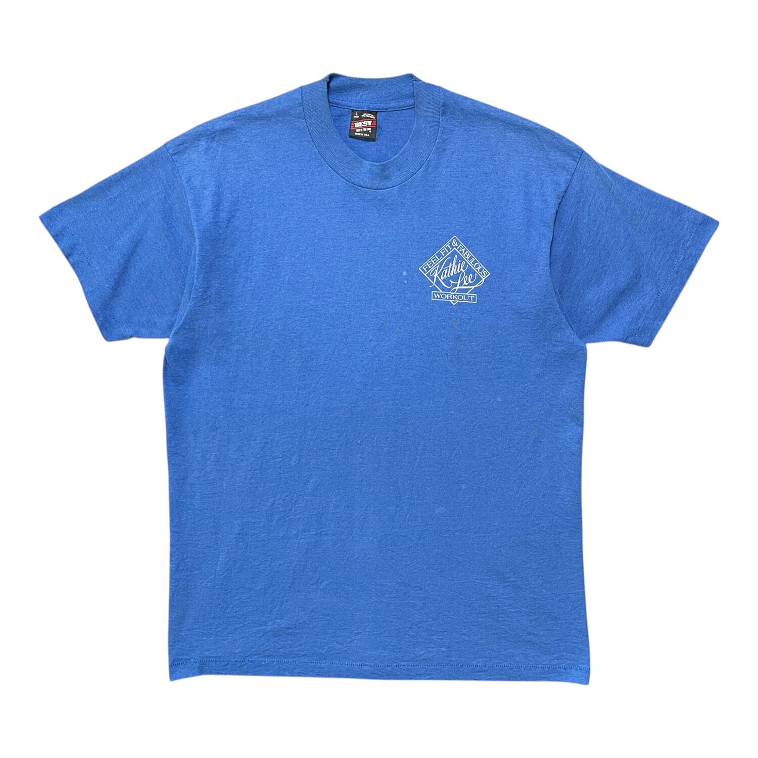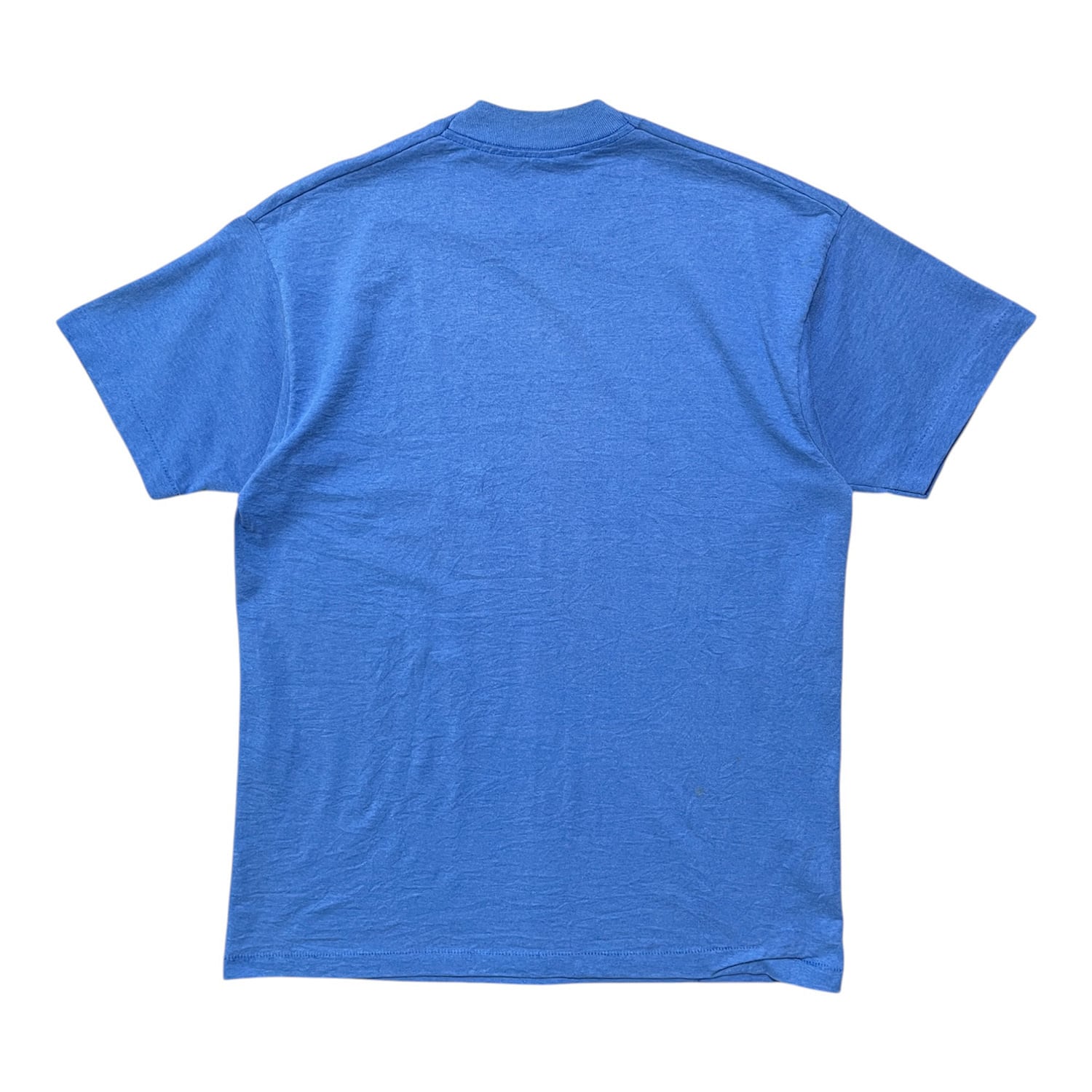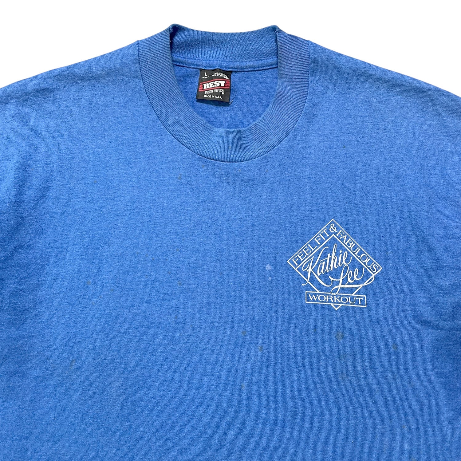 古着 USA製 90S フィットネス ジム Tシャツ ヴィンテージ プリント ブルー メンズL クルーネック シングルステッチ BA4633