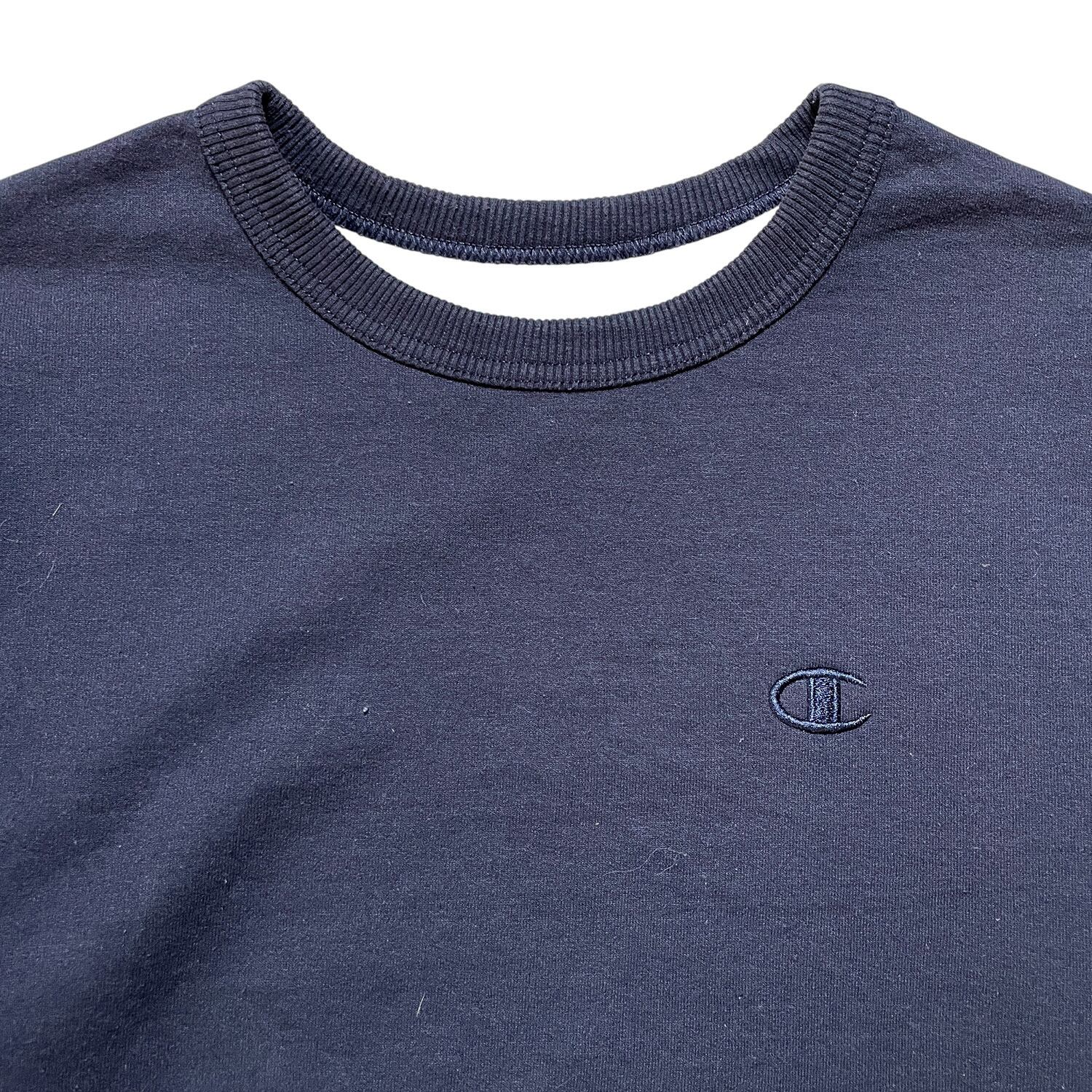 USA 古着 Champion チャンピオン 刺繍ロゴ クルーネック スウェット トレーナー メンズS ネイビー 紺色 無地 BD2424