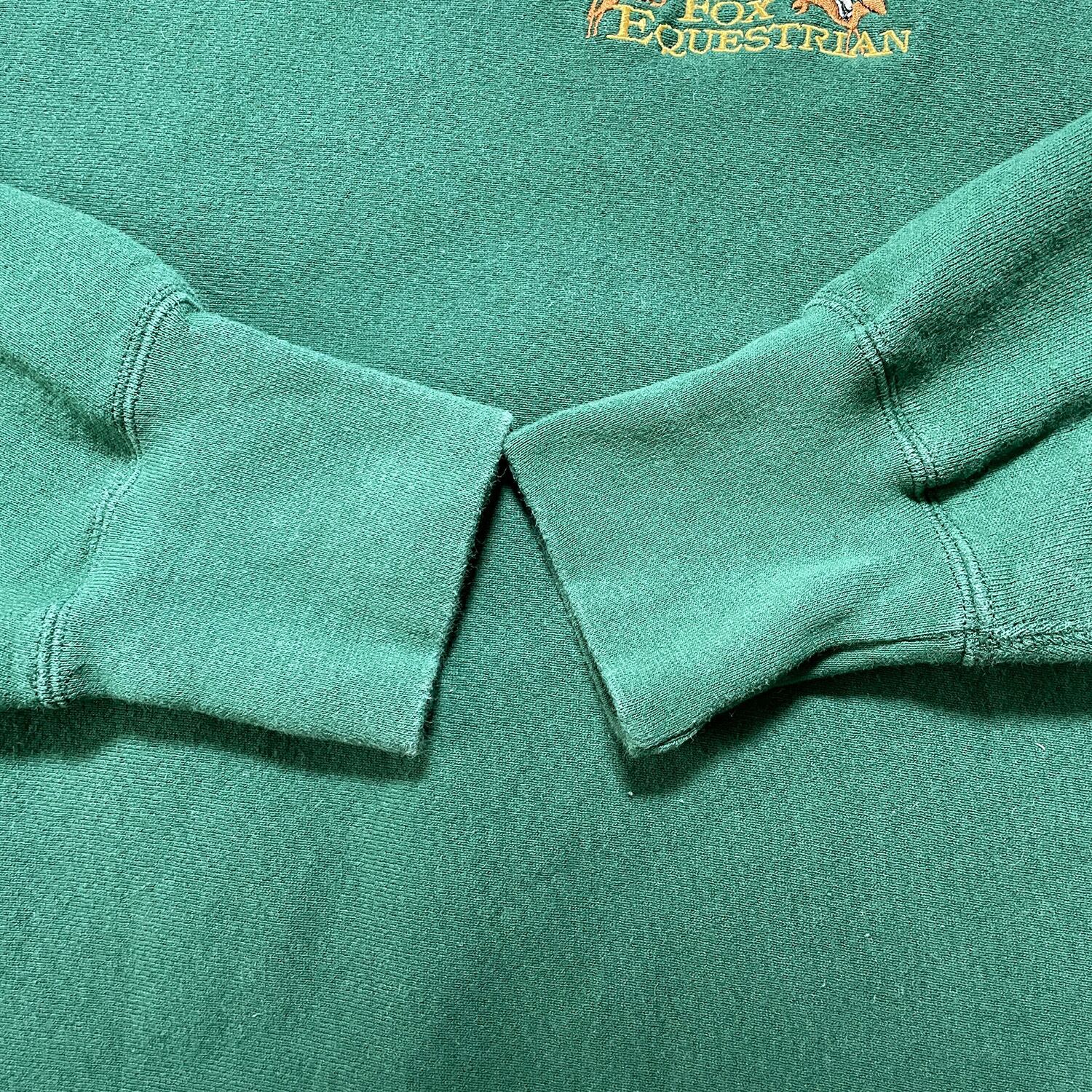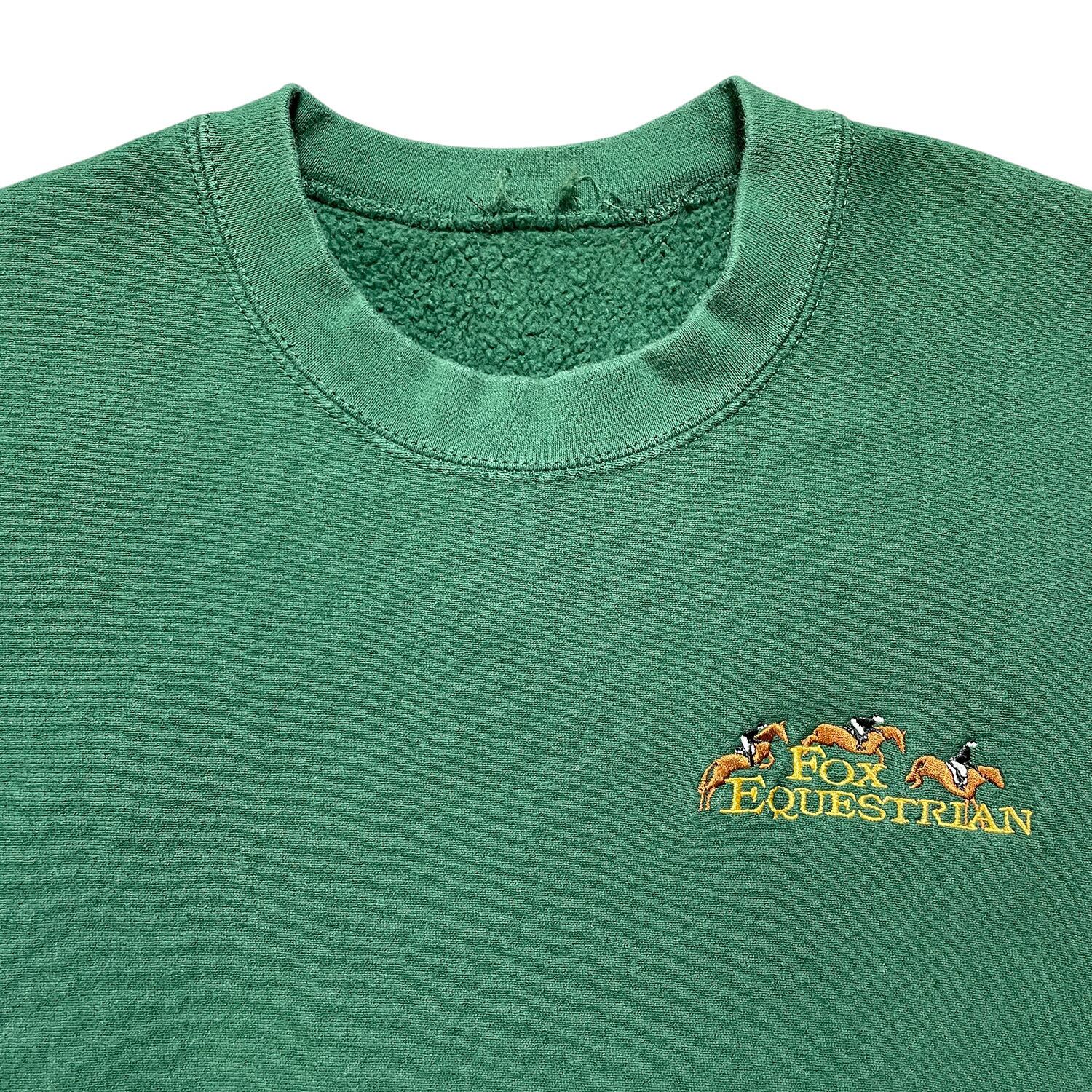 USA 古着 乗馬場 リバースウィーブタイプ スウェット トレーナー 刺繍 ロゴ ワンポイント グリーン クルーネック 野良リバース BD2433