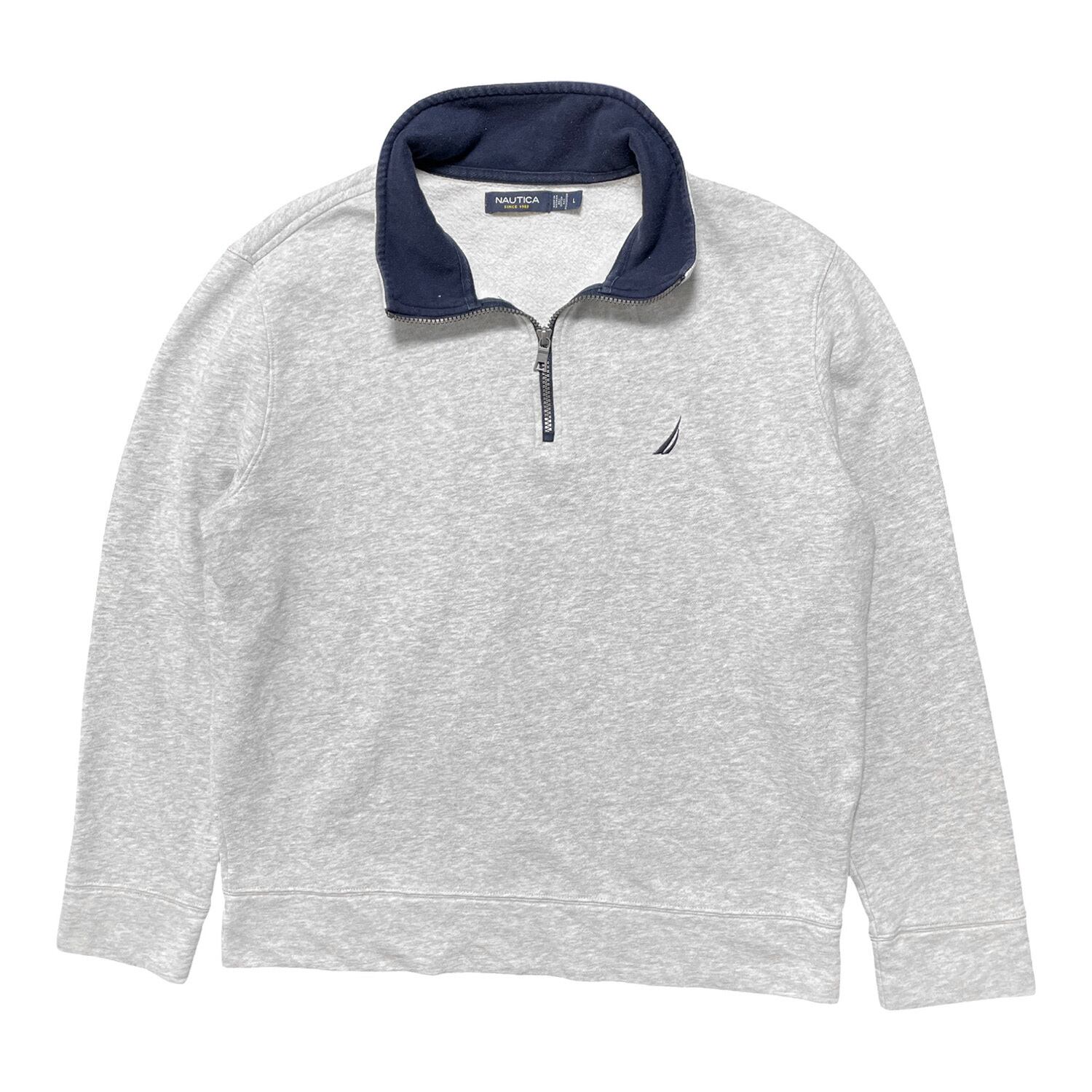 USA 古着 NAUTICA ノーティカ スウェット トレーナー ロゴ 刺繍 ワンポイント グレー メンズL ハーフジップ BD2439