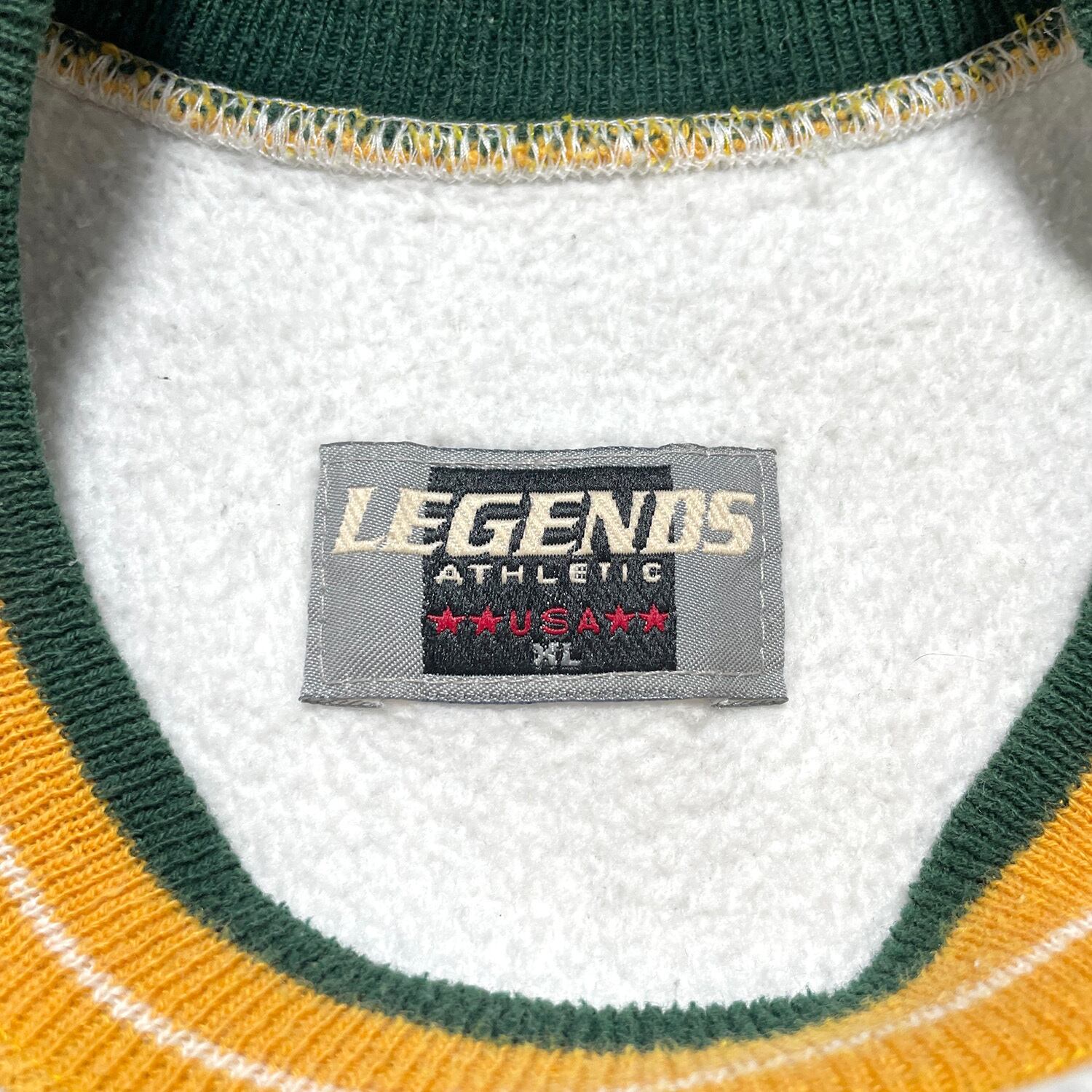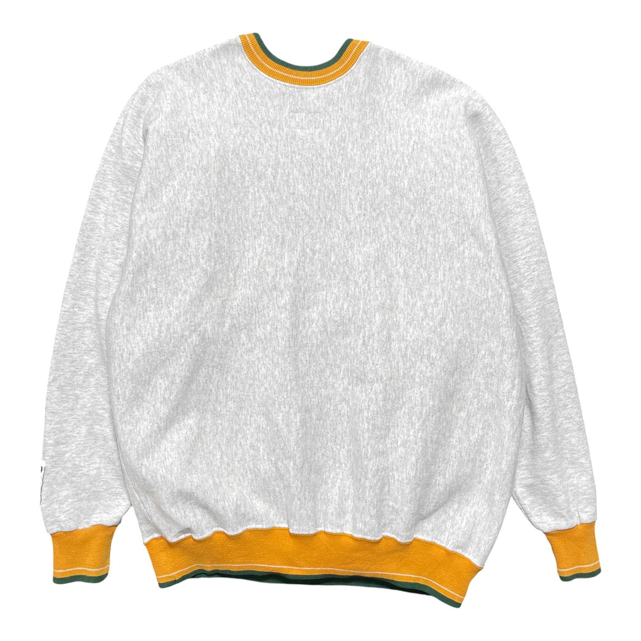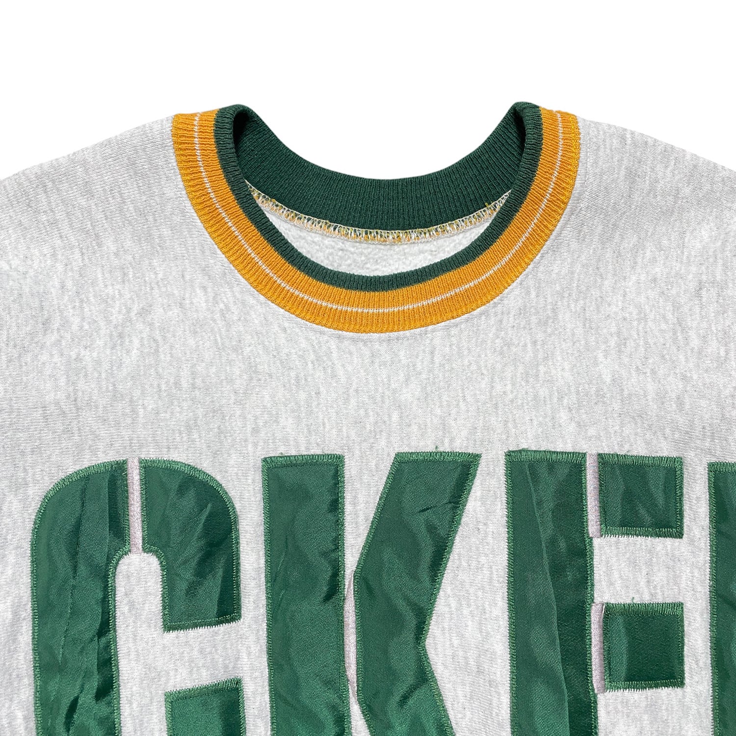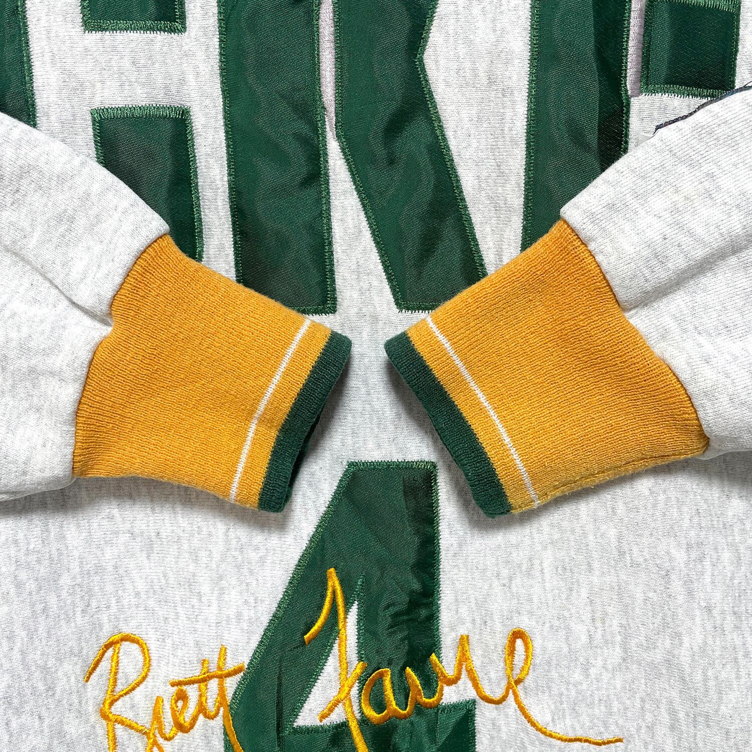 古着 USA製 90S NFL グリーンベイパッカーズ ブレットファーヴ スウェット トレーナー ロゴ 刺繍 グレー メンズXL クルーネック フットボール BD2443