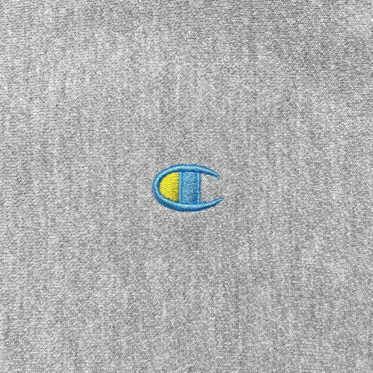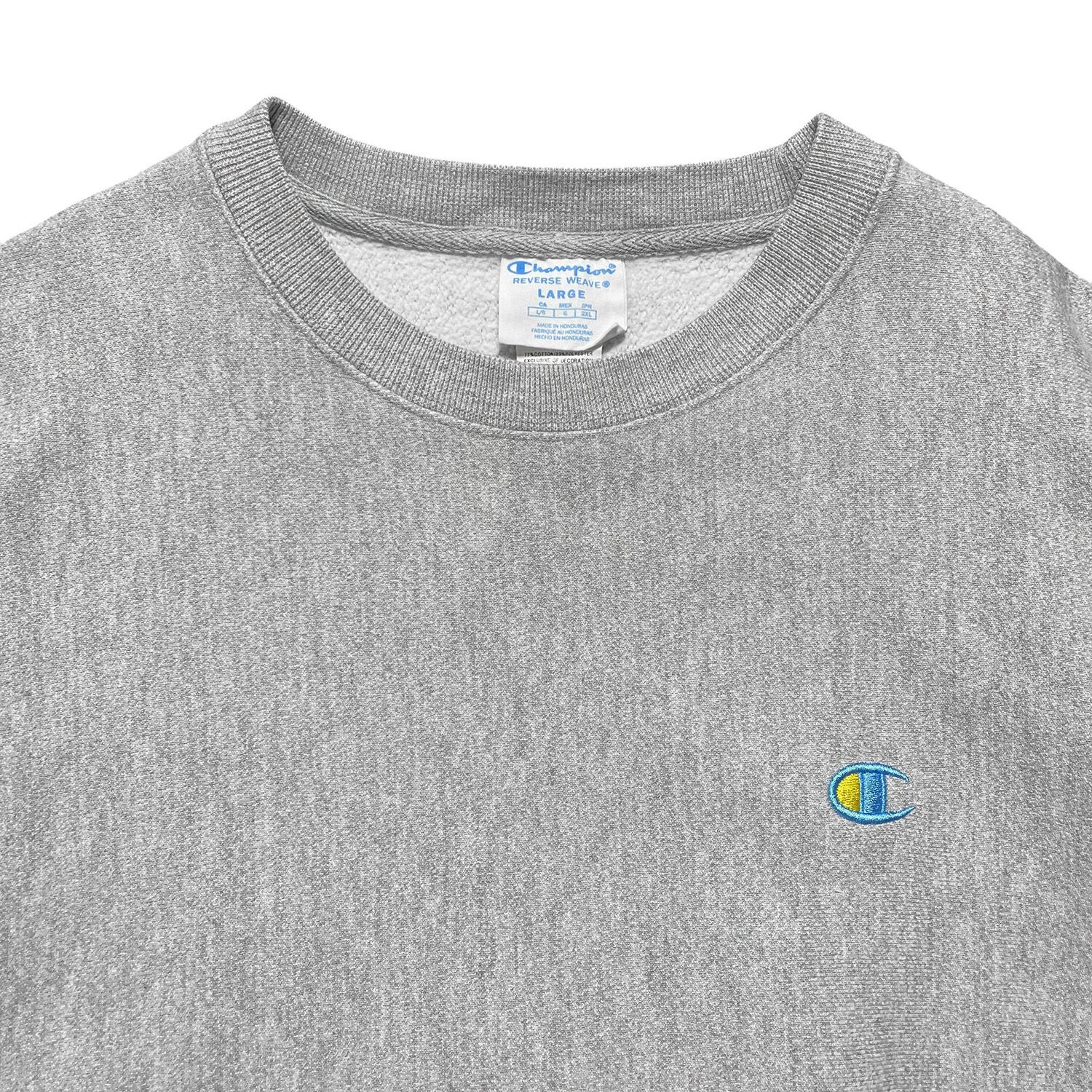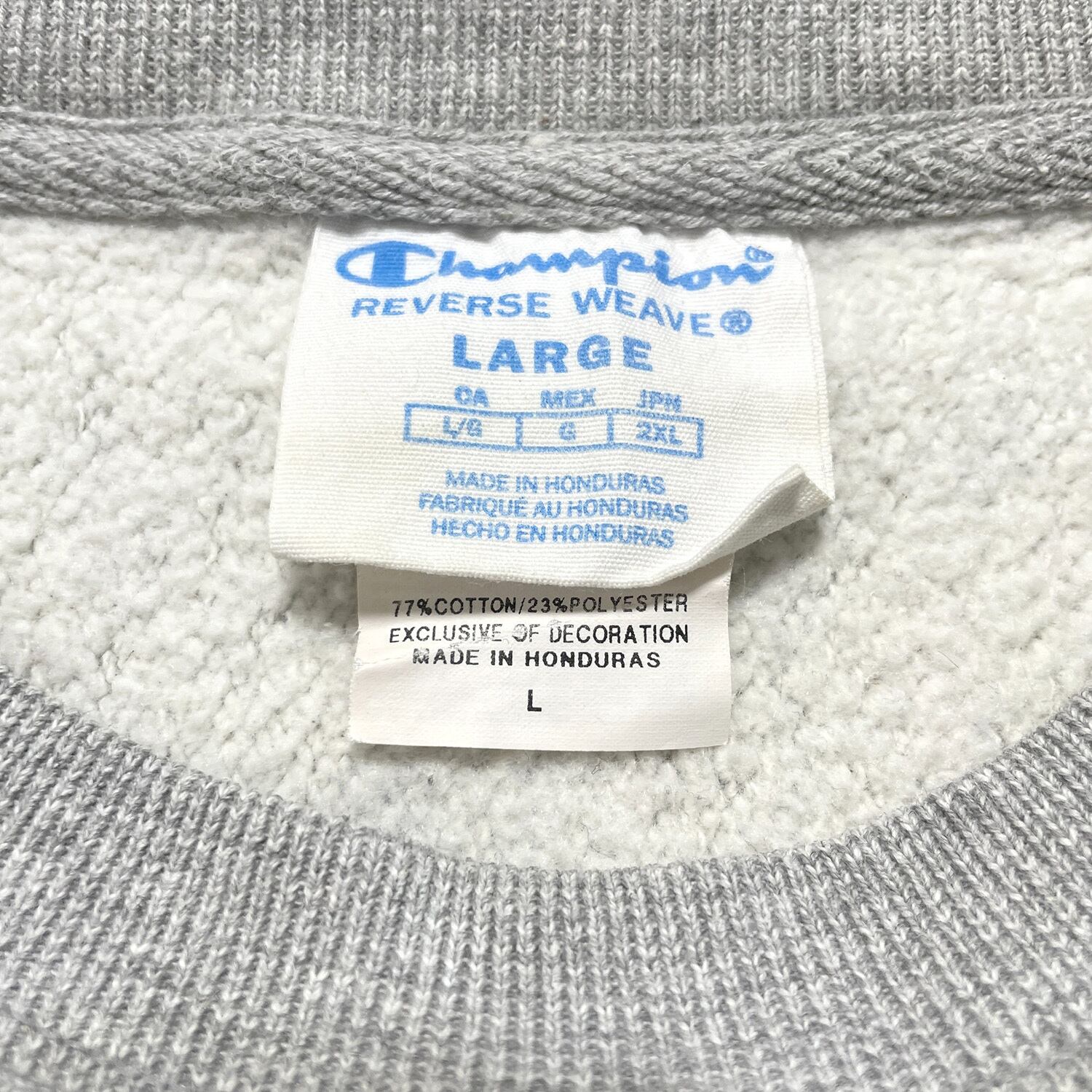 USA 古着 Champion チャンピオン リバースウィーブ スウェット トレーナー ロゴ 刺繍 プリント グレー メンズL クルーネック BD2444