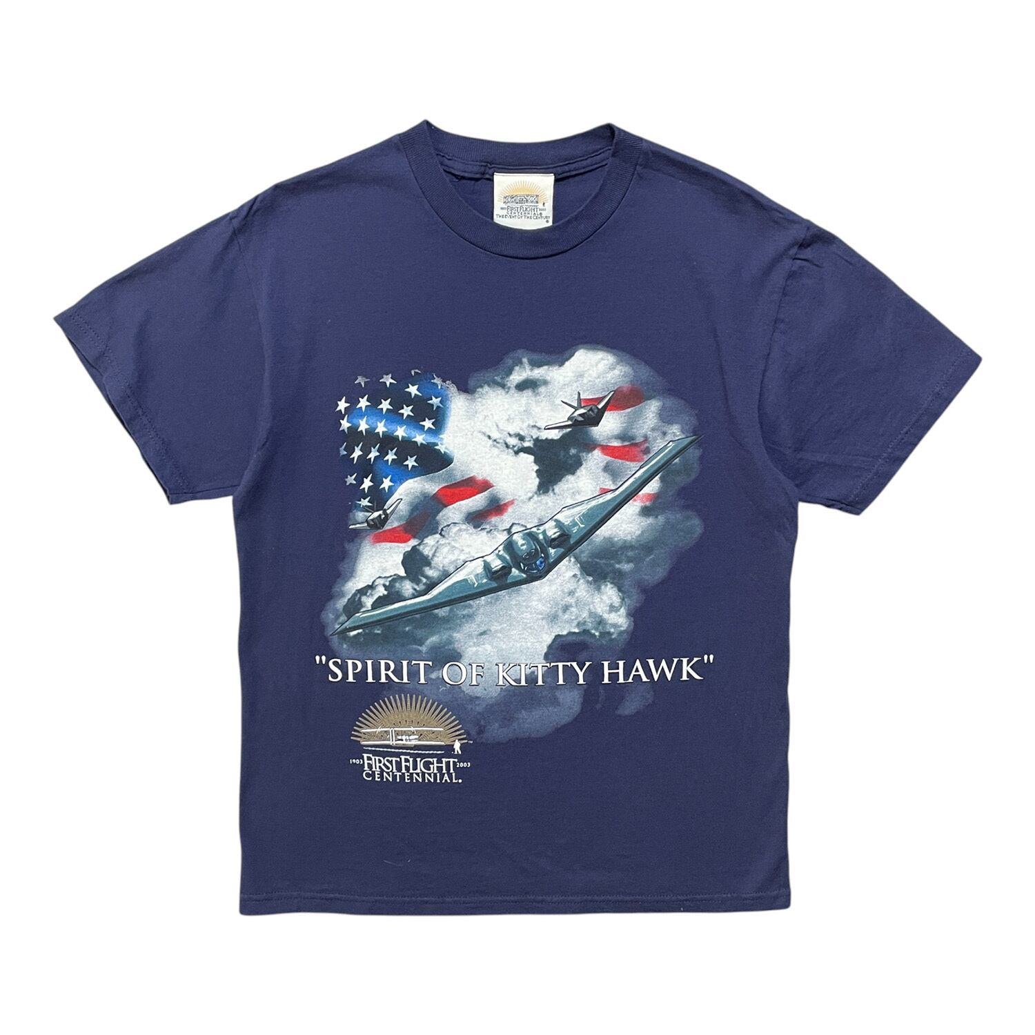 USA 古着 スピリットオブキティホーク ステルス戦闘機 Tシャツ プリント ネイビー メンズM クルーネック BA4659