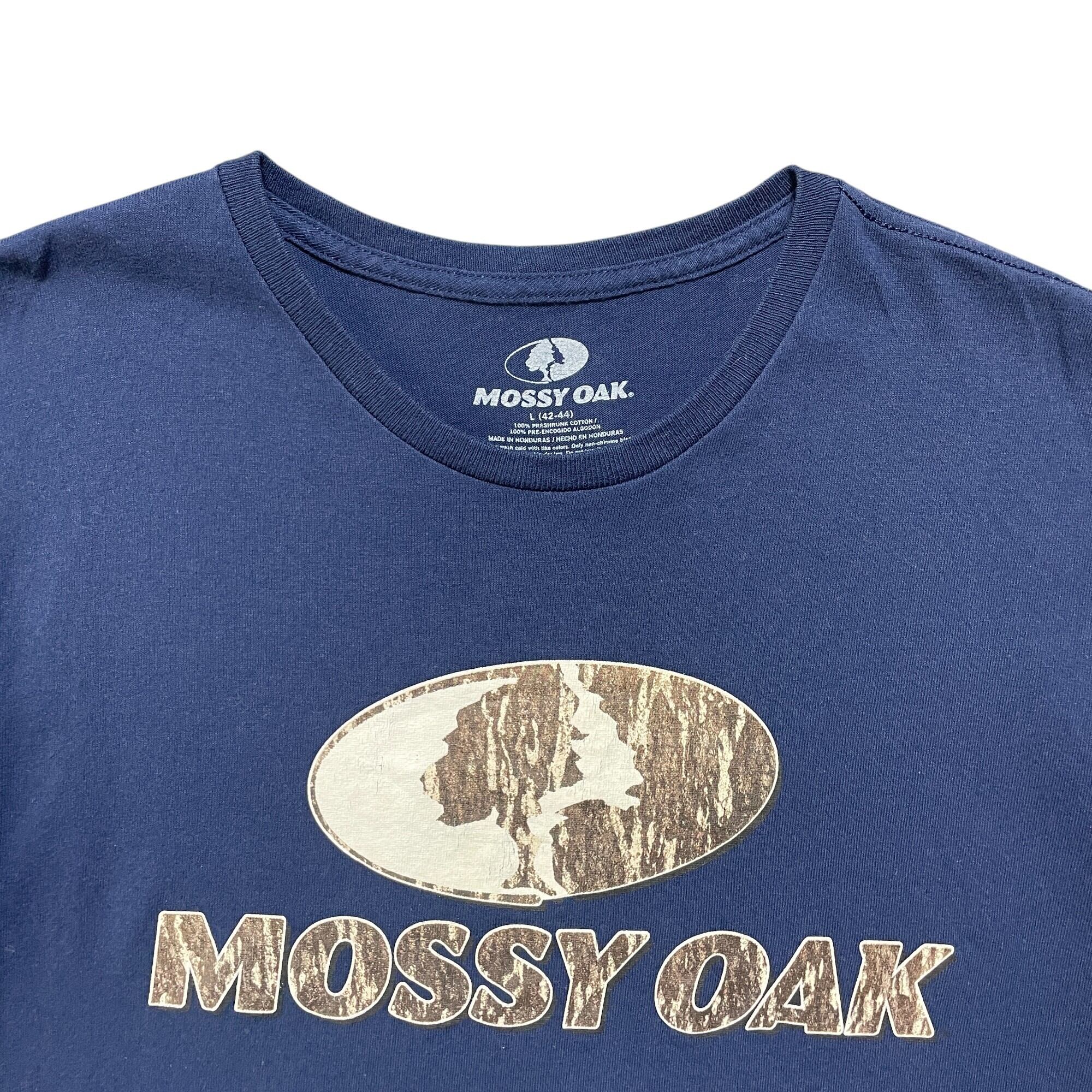 USA 古着 MOSSY OAK モッシーオーク Tシャツ ロゴ プリント ネイビー メンズL クルーネック アウトドア BA4662