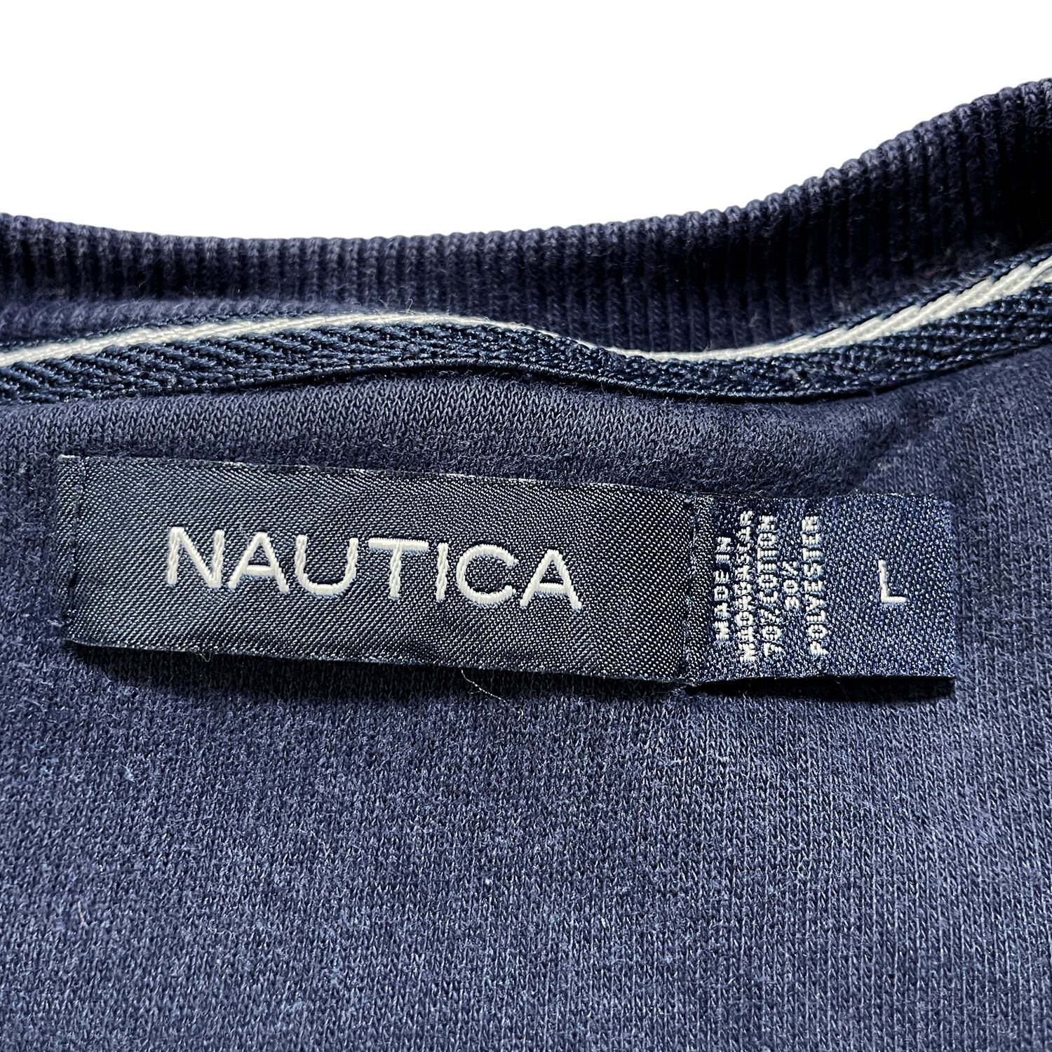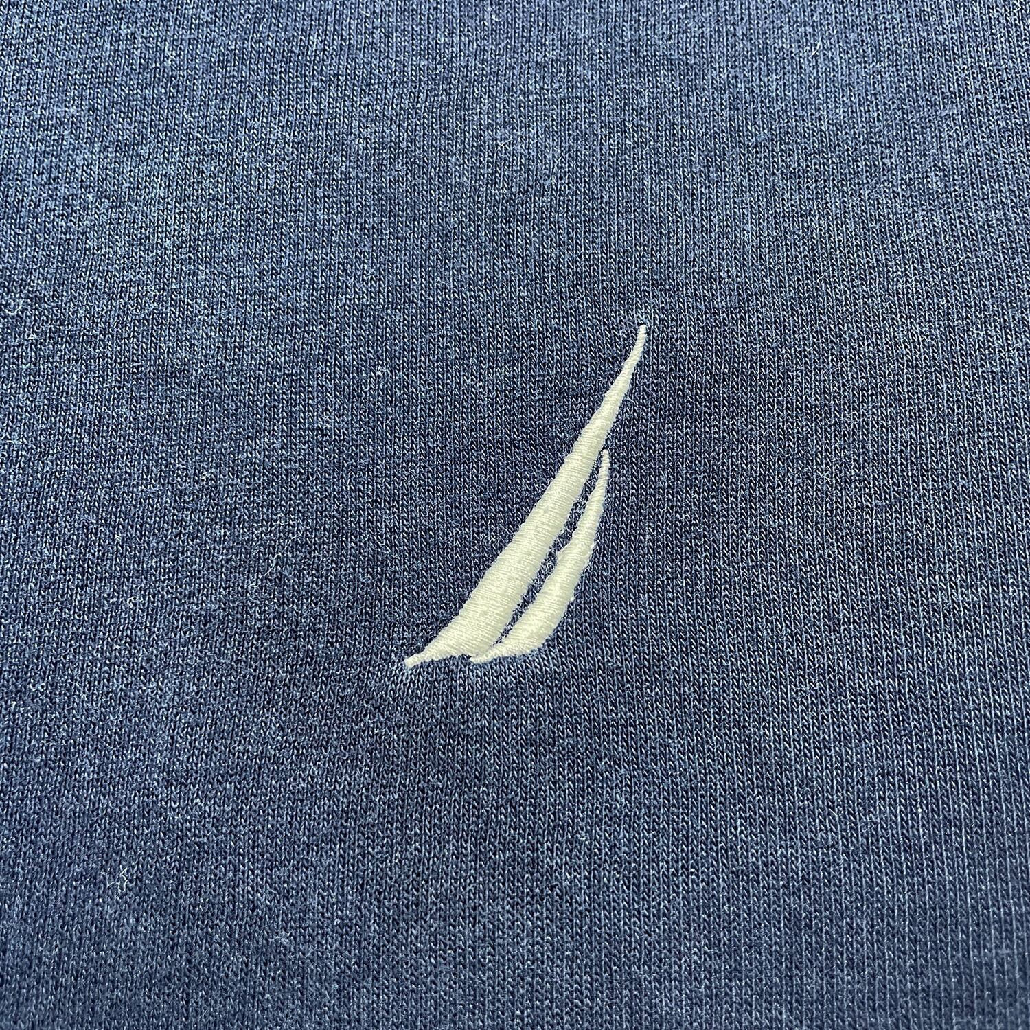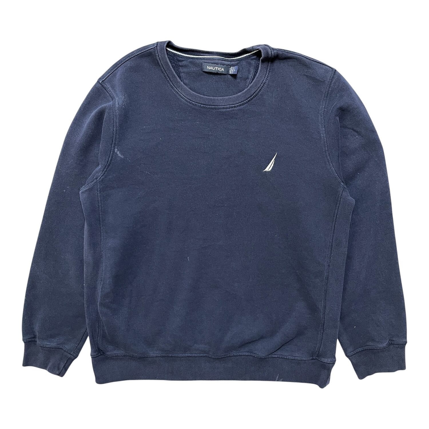 USA 古着 NAUTICA ノーティカ スウェット トレーナー ロゴ 刺繍 ワンポイント ネイビー メンズL クルーネック BD2466