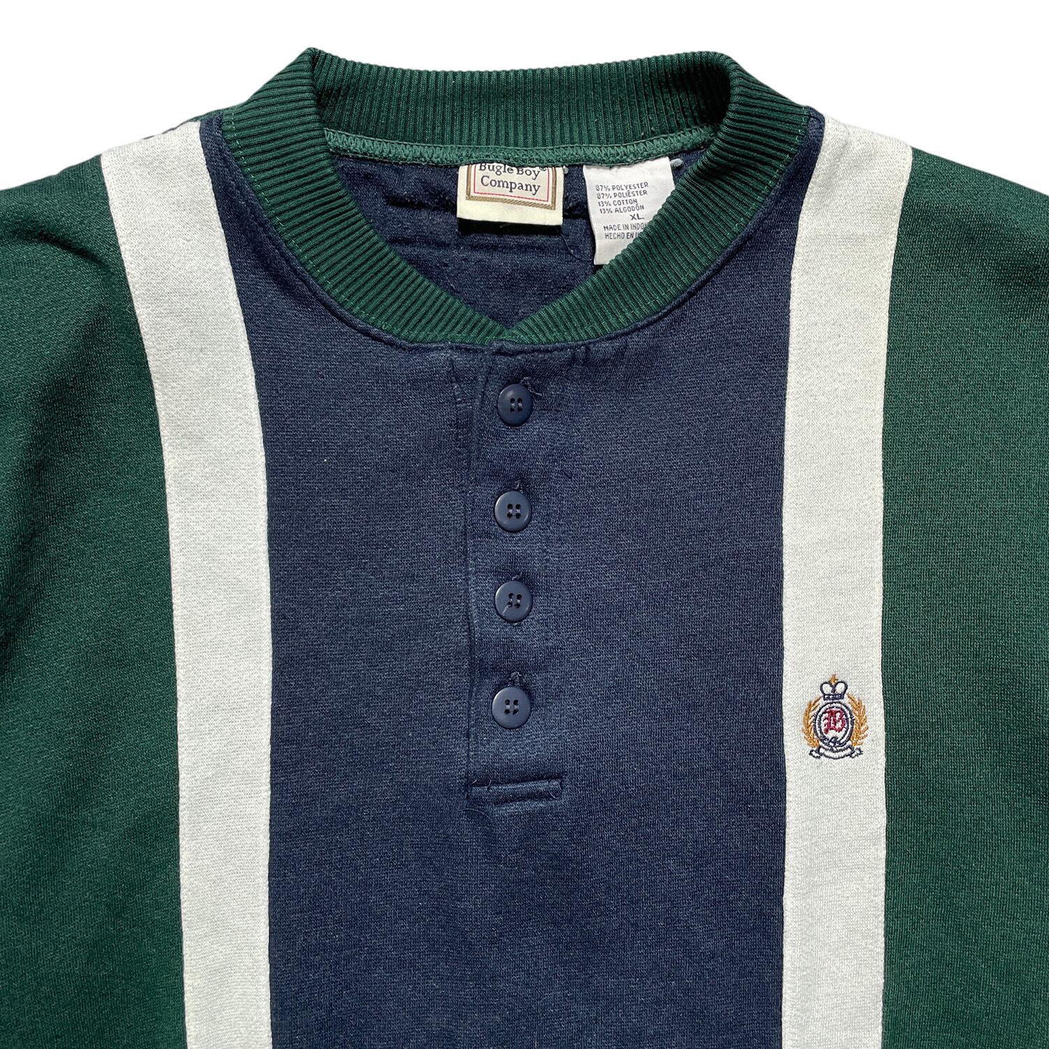 USA 古着 Bugle Boy ビューグルボーイ スウェット トレーナー クレイジーパターン ストライプ メンズXL ヘンリーネック BD2473